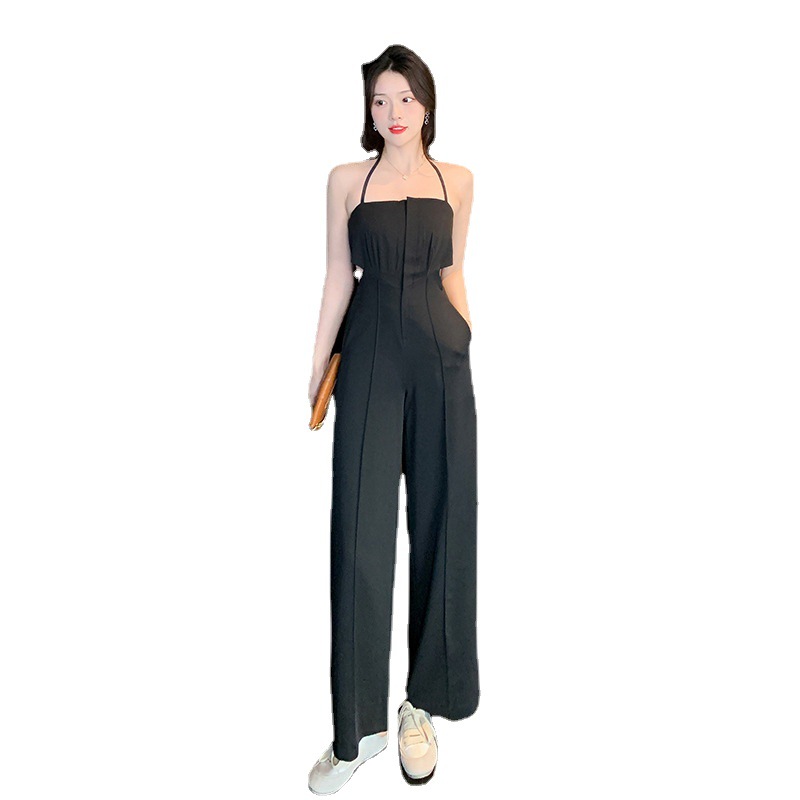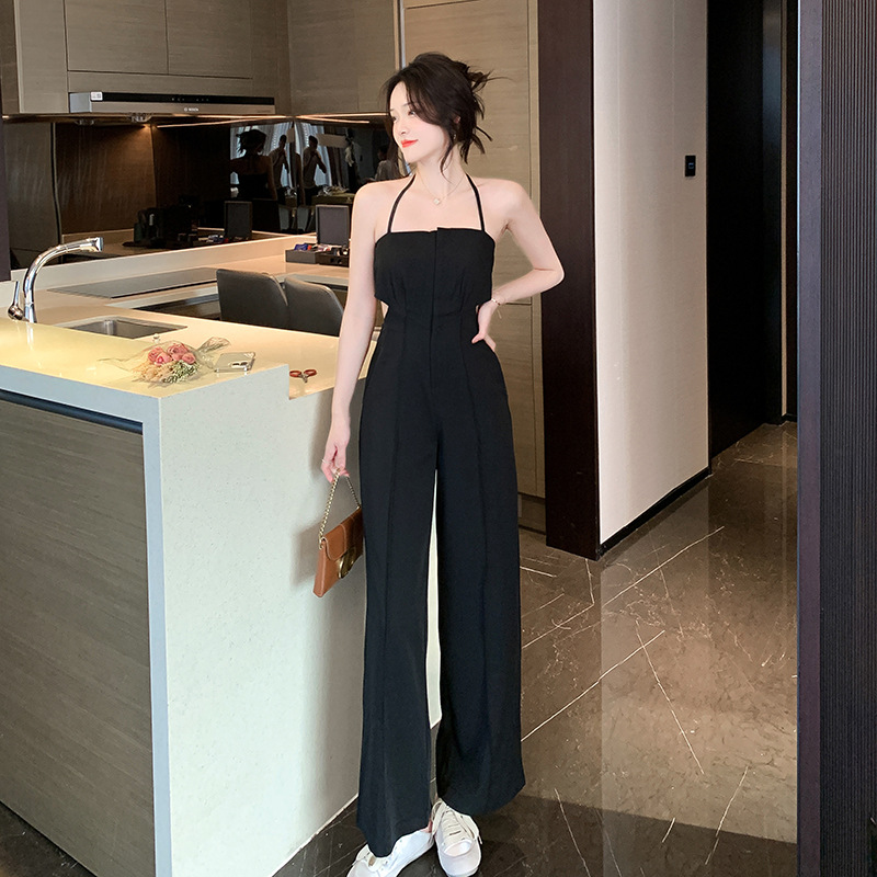 | nameOriginal | Real shot 2023 pure desire style sling jumpsuit super slim wide leg pants trousers high waist simple elegant temperament pants |