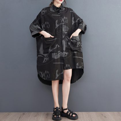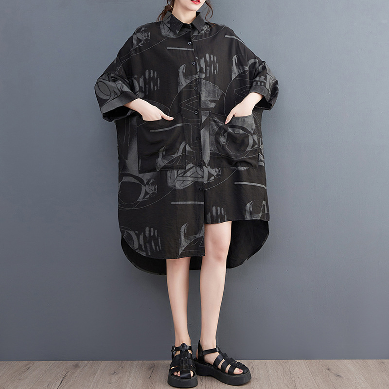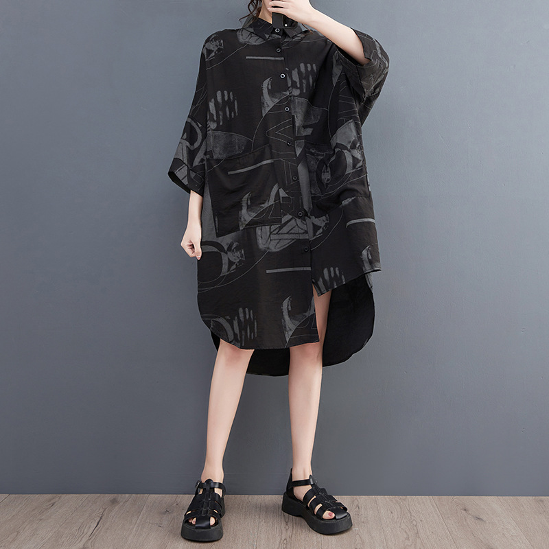 Real shot 2023 Summer new 200kg irregular large size loose Joker long shirt dress