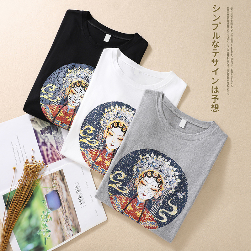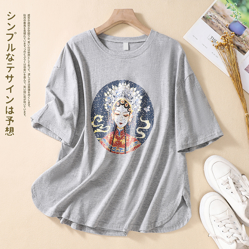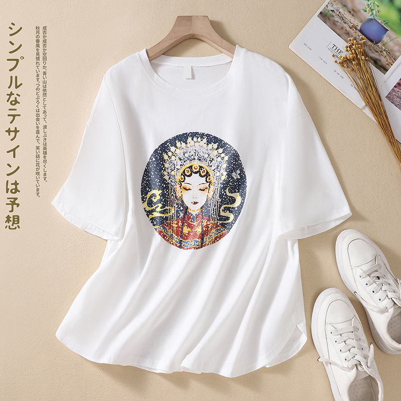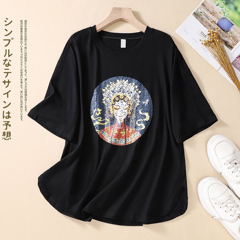 | nameOriginal | Real Shot 2023 Summer New Arrival Fat Girl Artistic Retro Chinese Style Round Neck Pullover Printed Pure Cotton Short Sleeve T-Shirt |