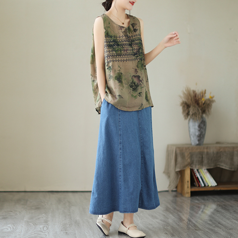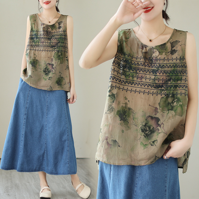 | nameOriginal | Real shot 2023 Summer new loose round neck vest camisole artistic retro ethnic style embroidered top |