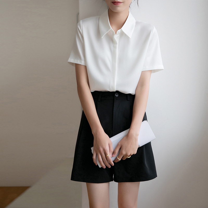 Real shot 2023 white professional commuter shirt women's short sleeve anti-wrinkle drape hidden button design minority interview formal summer