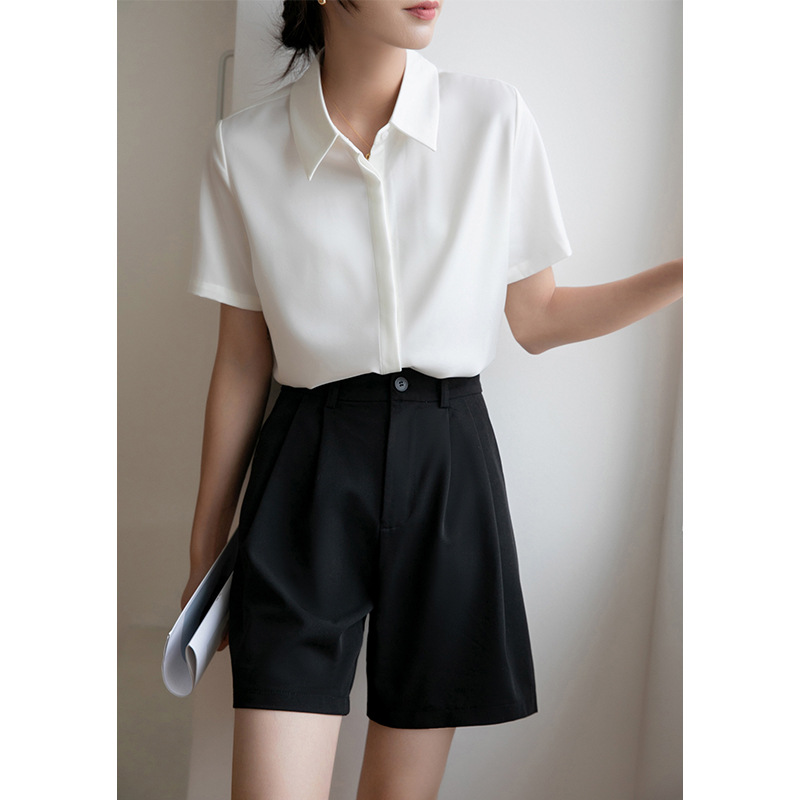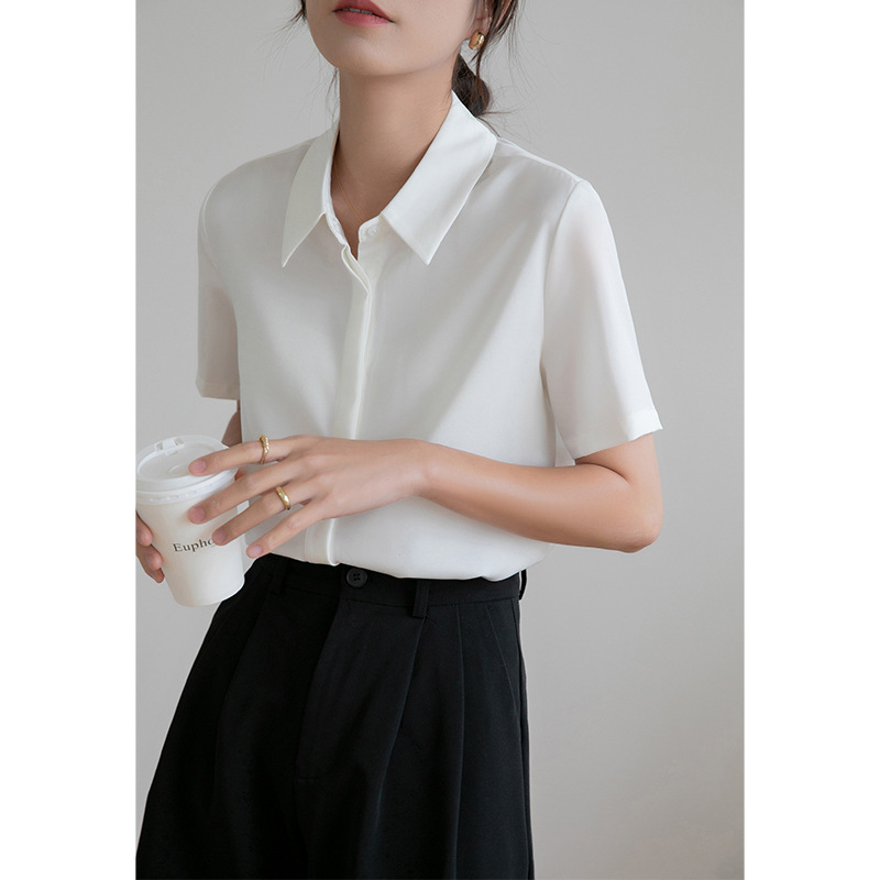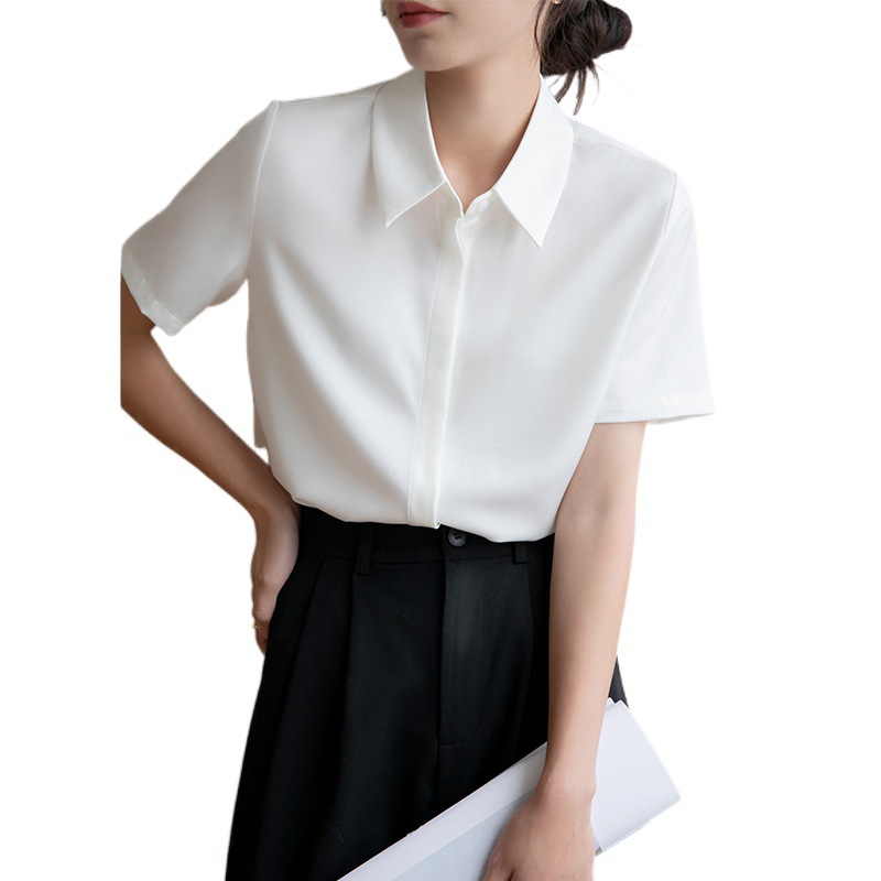 Real shot 2023 white professional commuter shirt women’s short sleeve anti-wrinkle drape hidden button design minority interview formal summer