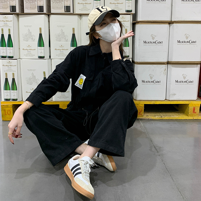 | nameOriginal | Real shot 2024 age-reducing black overalls short women's autumn Korean style high waist slimming casual pants suit |