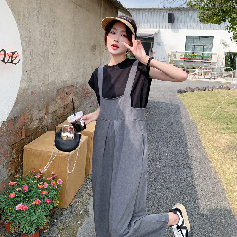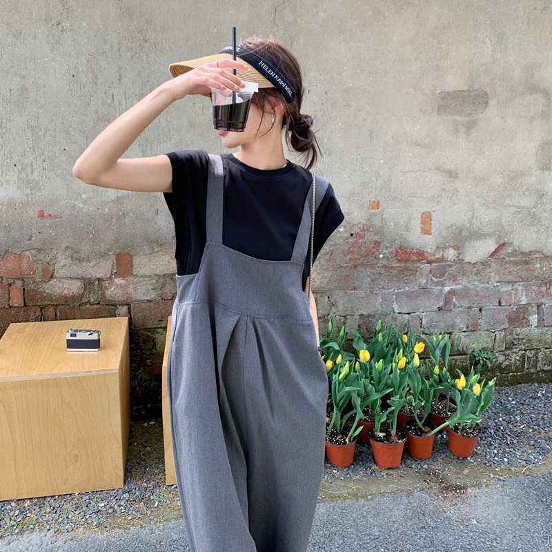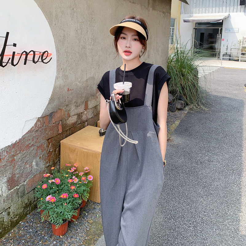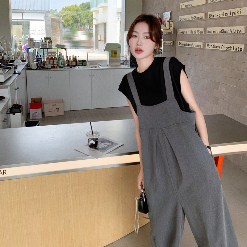 | nameOriginal | Real shot 2024 gray suspenders suit women's summer Korean version of age-reducing loose turnip jumpsuit two-piece set |