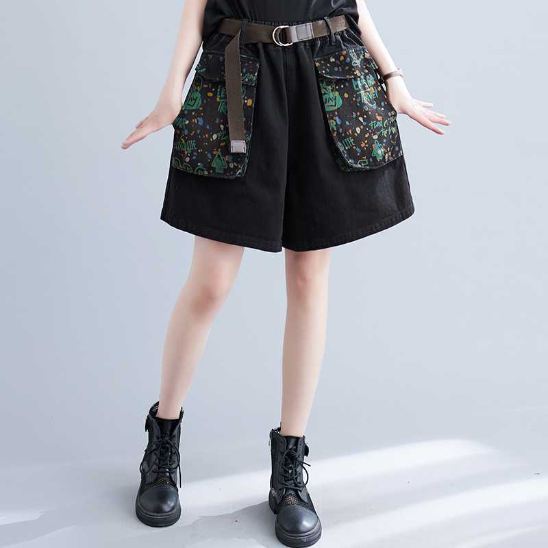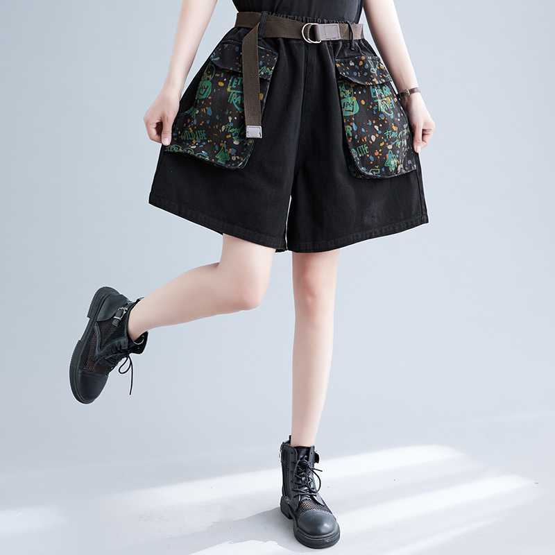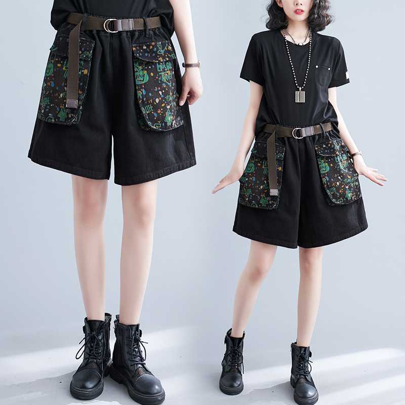 | nameOriginal | Real shot 2024 Joker Artistic Large Pocket Slimming chubby girl plus size Casual Belt Denim Shorts Wide Leg Pants |