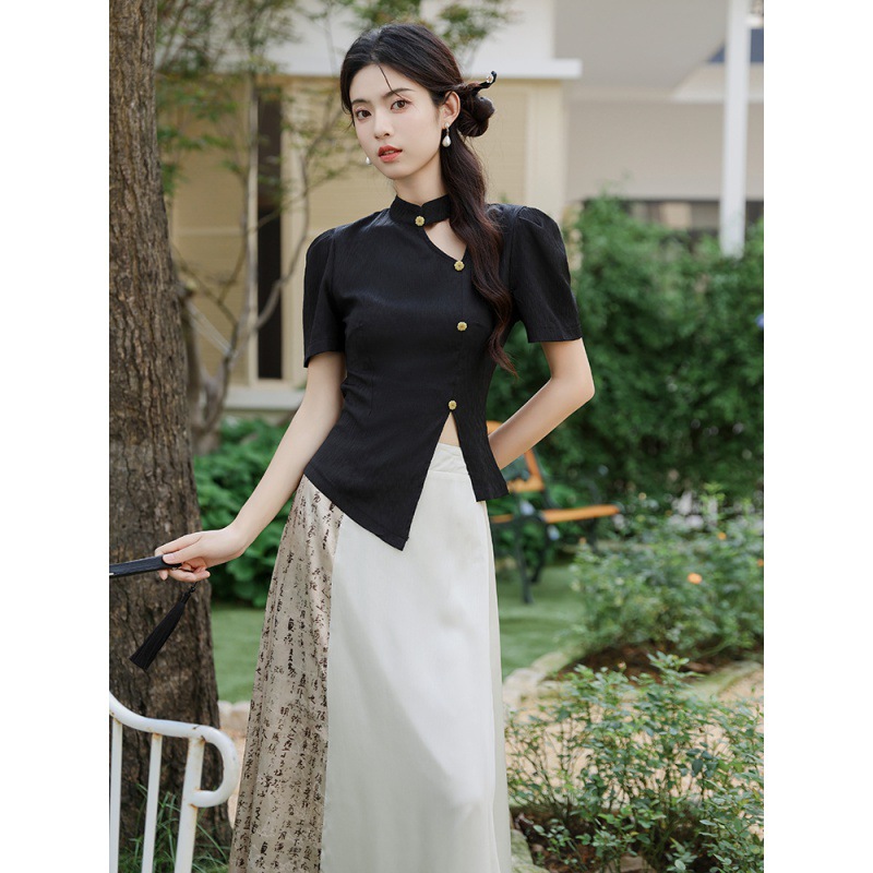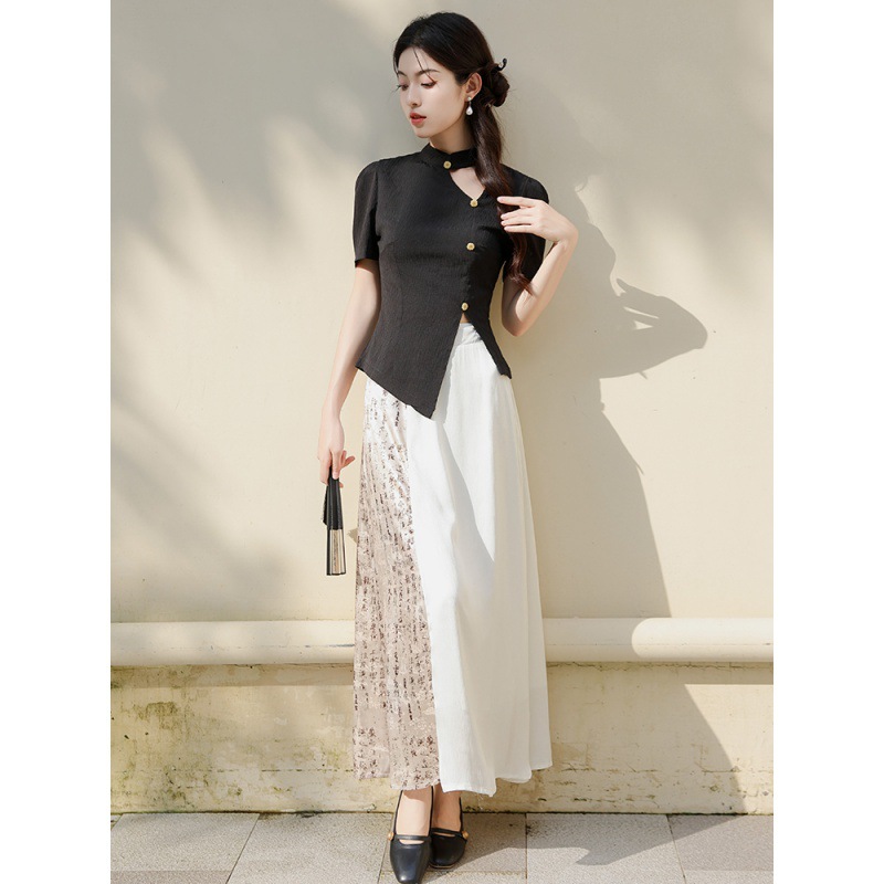 | nameOriginal | Real shot 2024 New Chinese National Style suit Women's Jacquard Short Sleeve Top Summer Design High Waist Skirt |