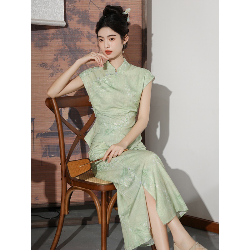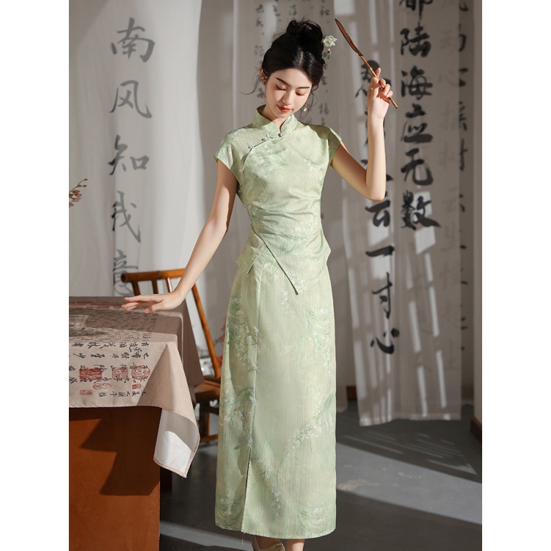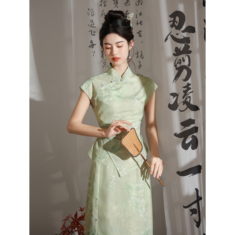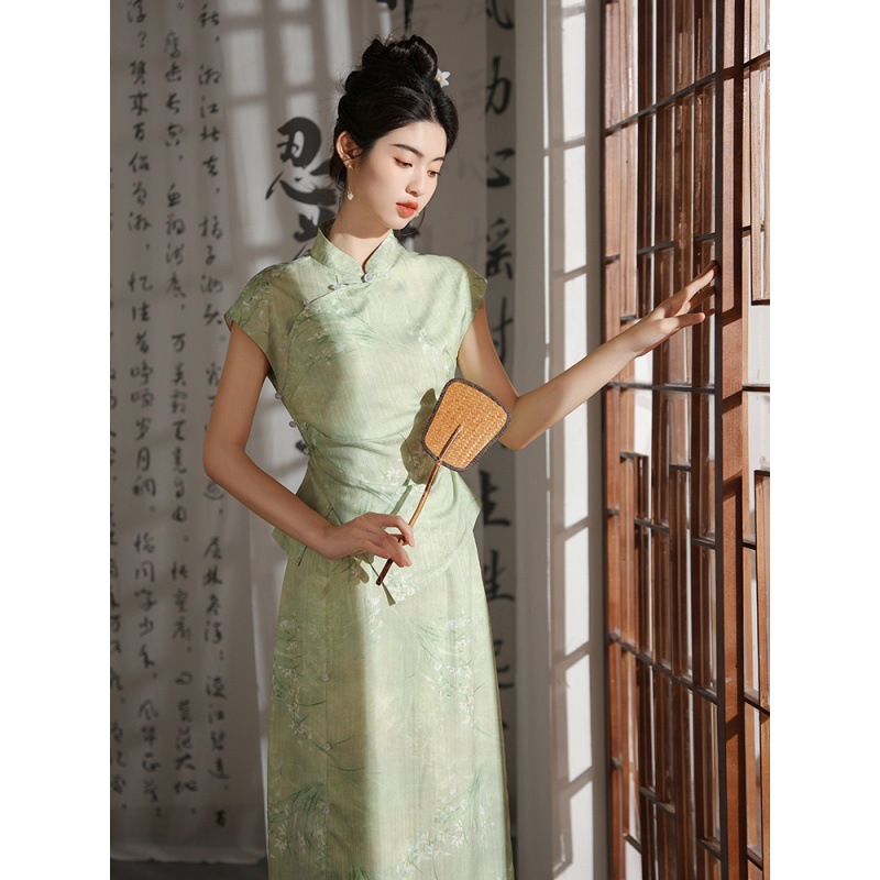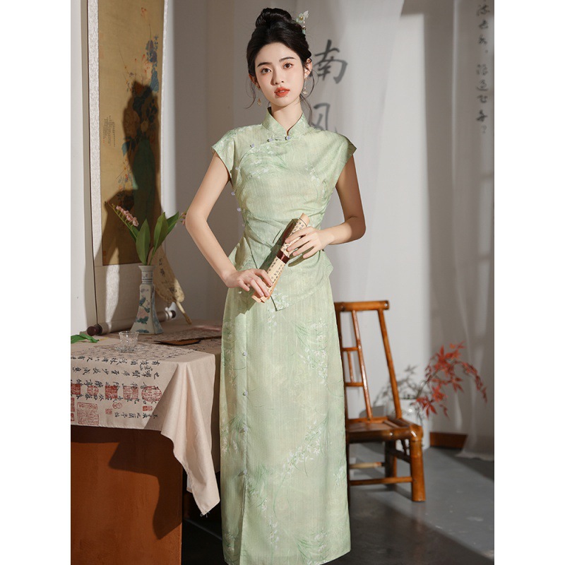 Real Shot 2024 New Chinese Style National Style Elegant Slim Skirt Summer Artistic Retro Girl Cheongsam Two-piece Set