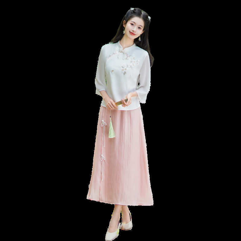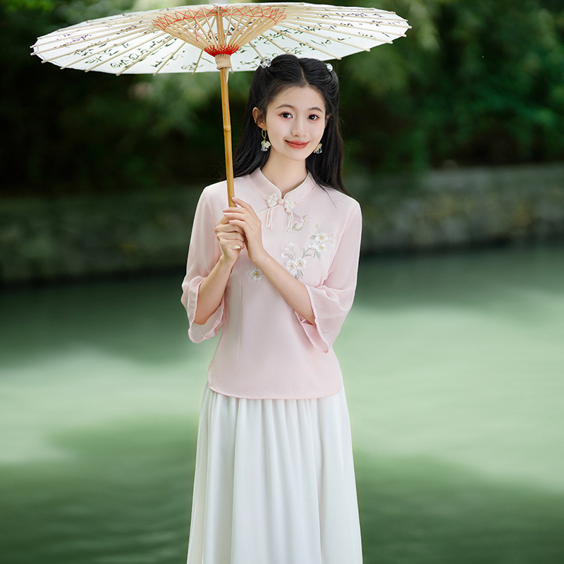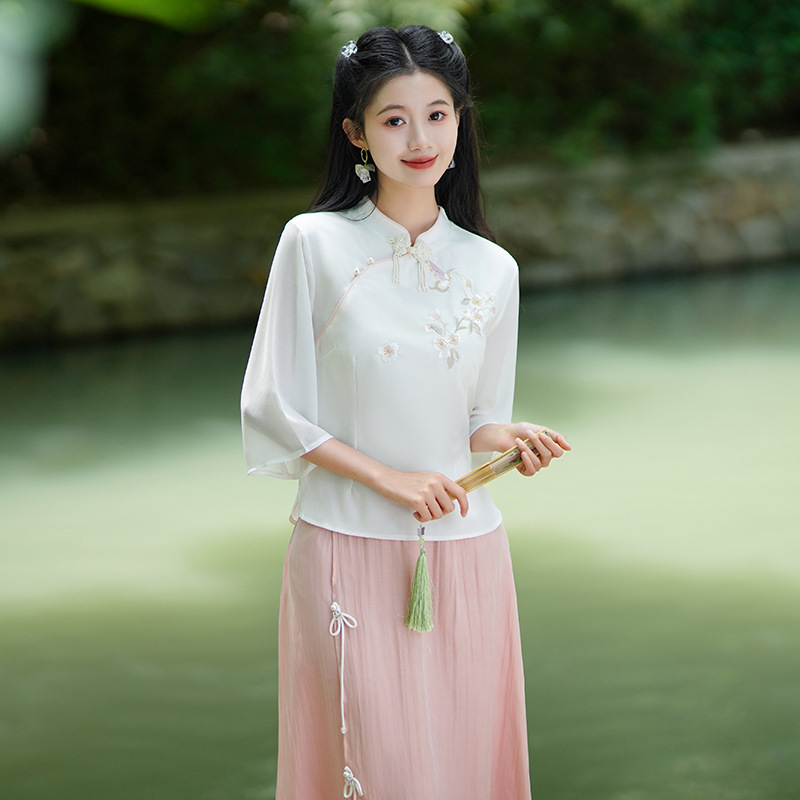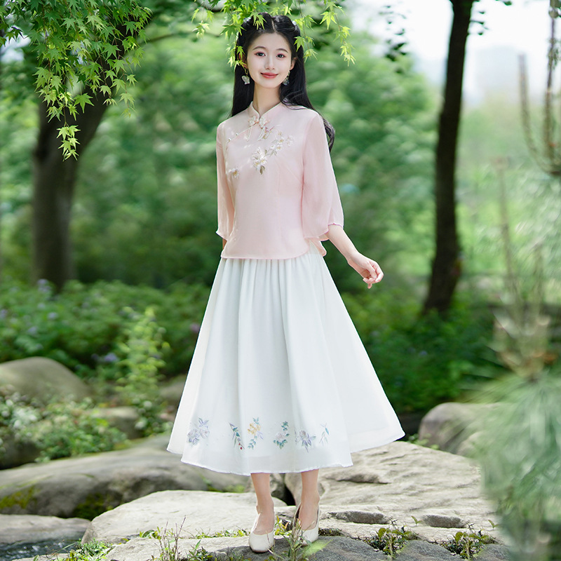 | nameOriginal | Real shot 2024 new Chinese style retro modified cheongsam embroidered short sleeve jacket retro art girl suit |