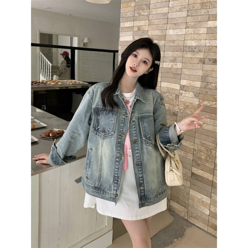 | nameOriginal | Real shot ~ 2024 New Embroidered Washed Old Denim Jacket Women's Trendy Ins Casual Loose All-match Top |