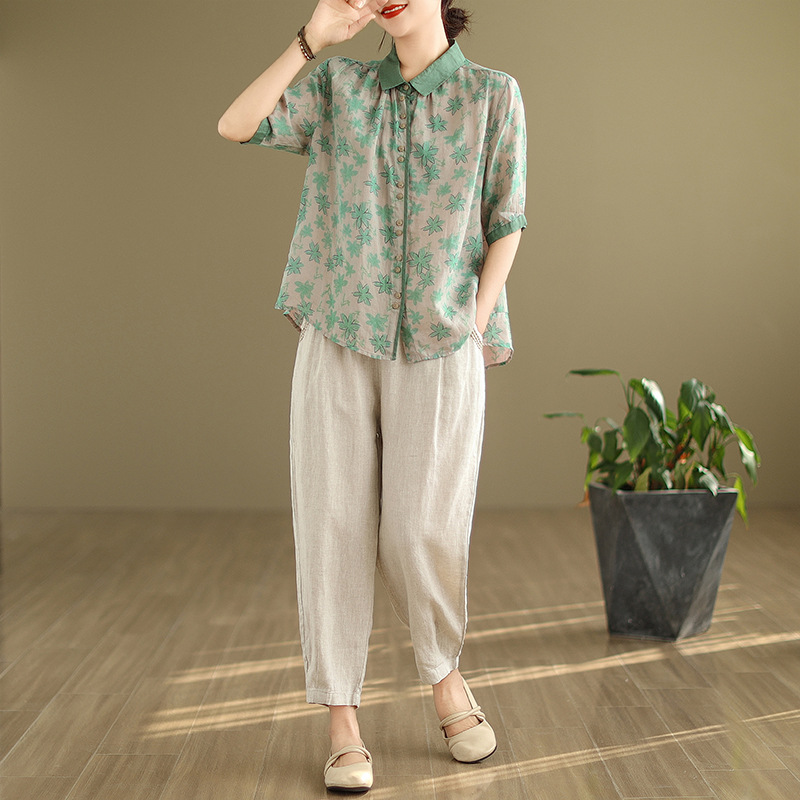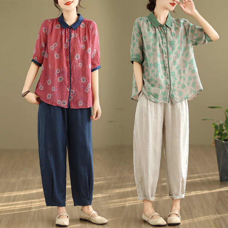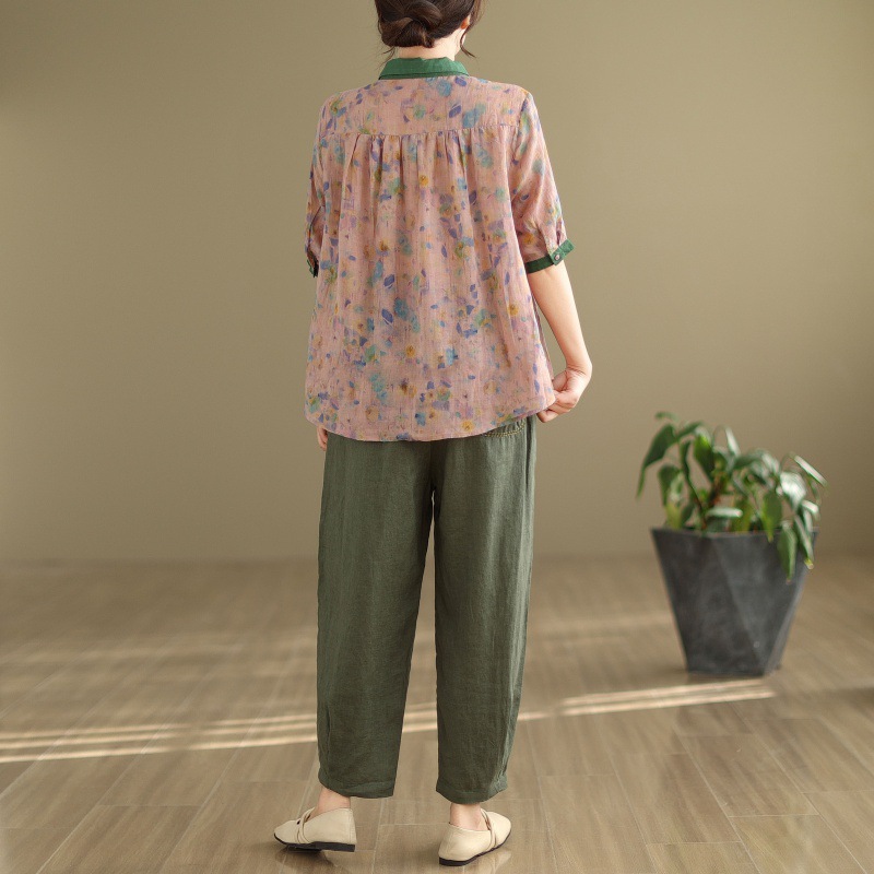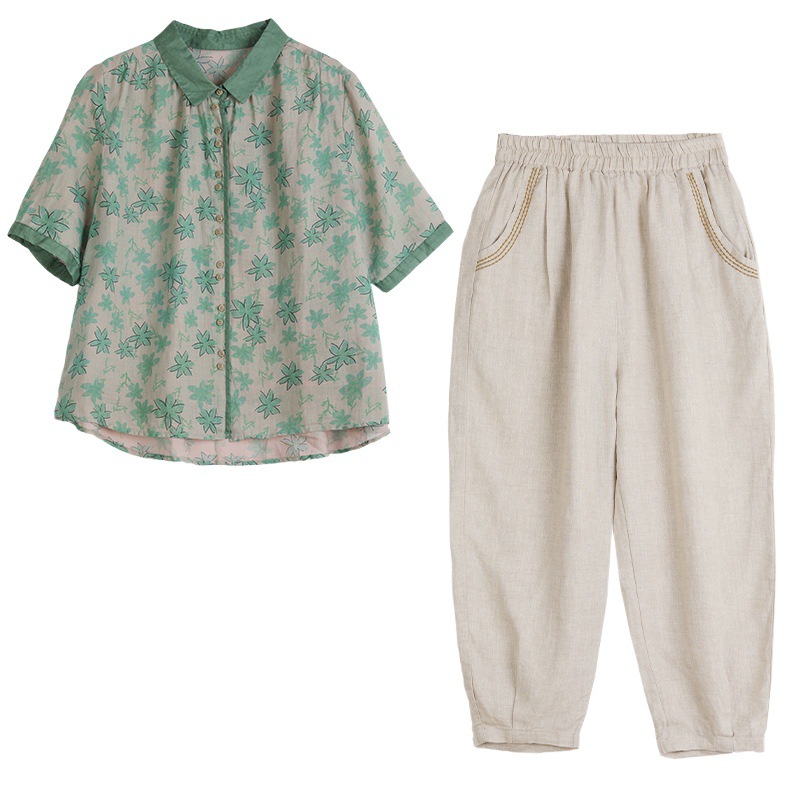 | nameOriginal | Real Shot 2024 New Korean Style Large Size Slimming Printed Artistic Retro Two-Piece Fashionable Cotton and Linen Summer Suit for Women |