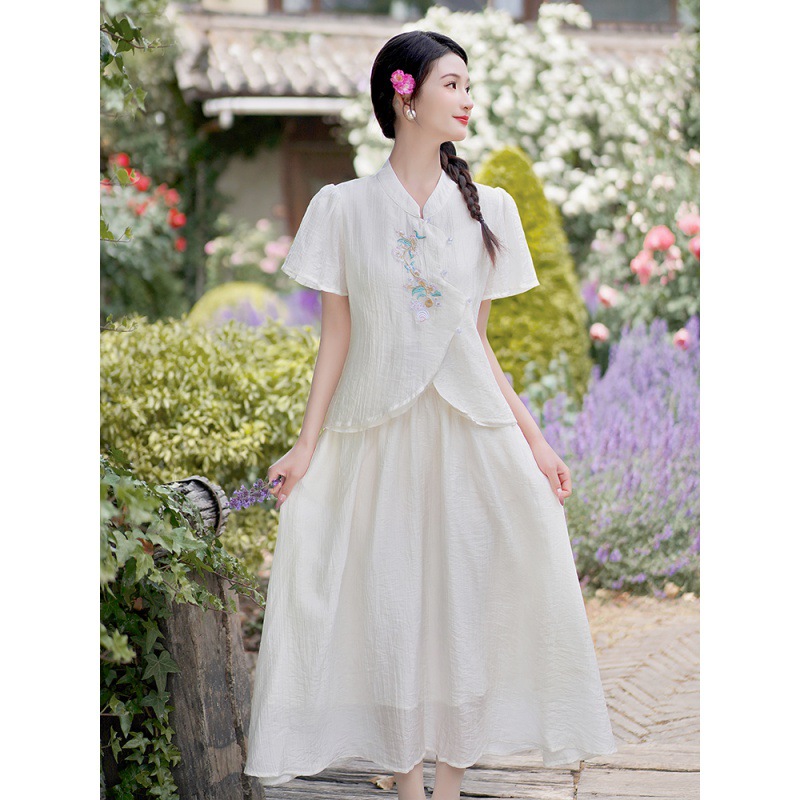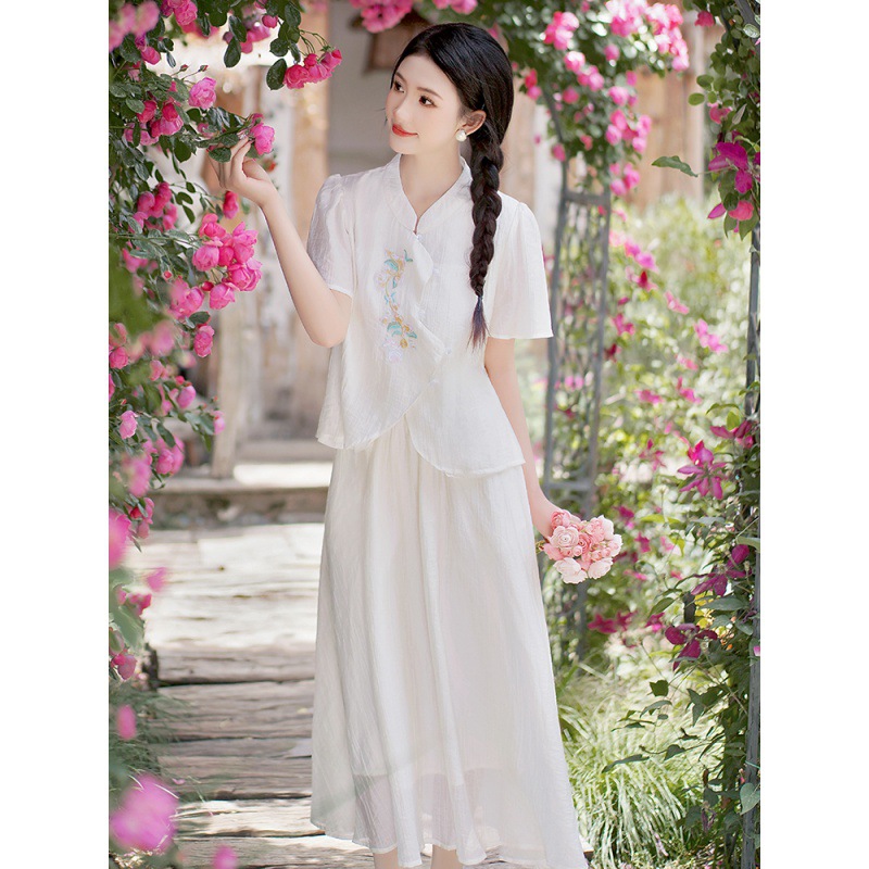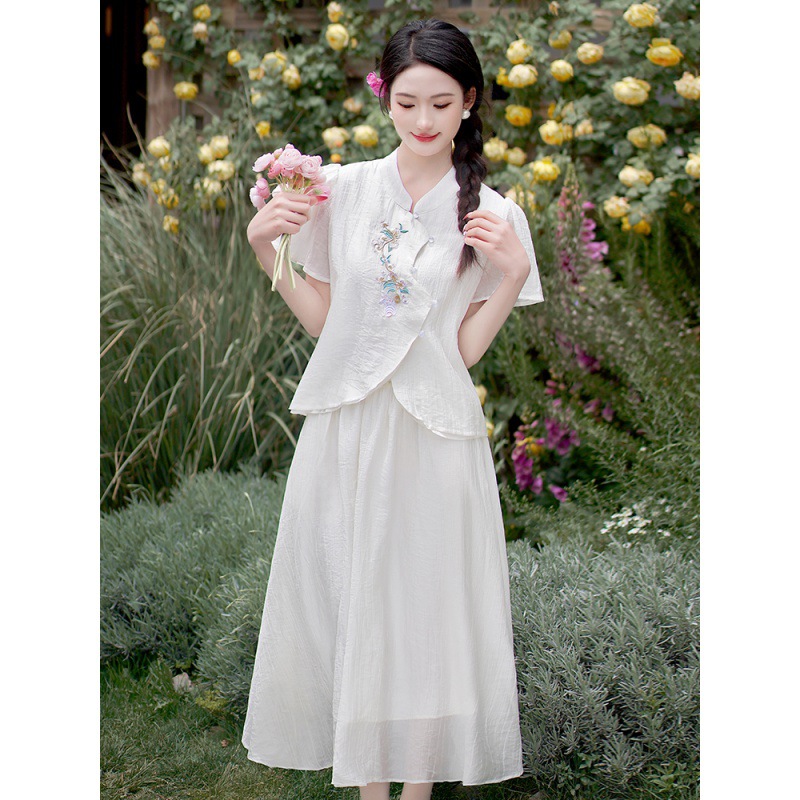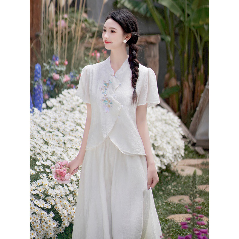| nameOriginal | Real shot 2024 new summer heavy industry embroidery new Chinese style suit small shirt long skirt two-piece set |