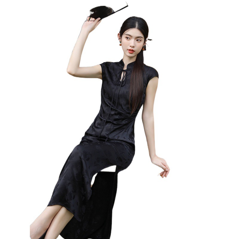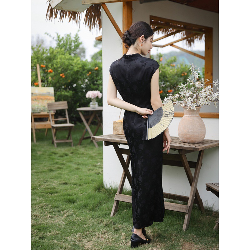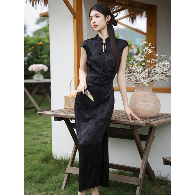 | nameOriginal | Real shot 2024 new Xia Xin Chinese satin Jacquard long sexy royal sister dress |