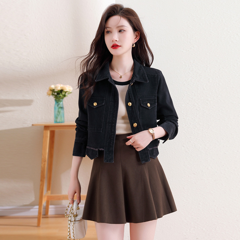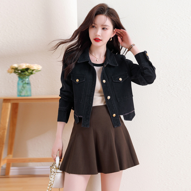 | nameOriginal | Real shot 2024 spring and autumn Korean style wide and small Chanel style jacket Hong Kong style Denim coat women's top |