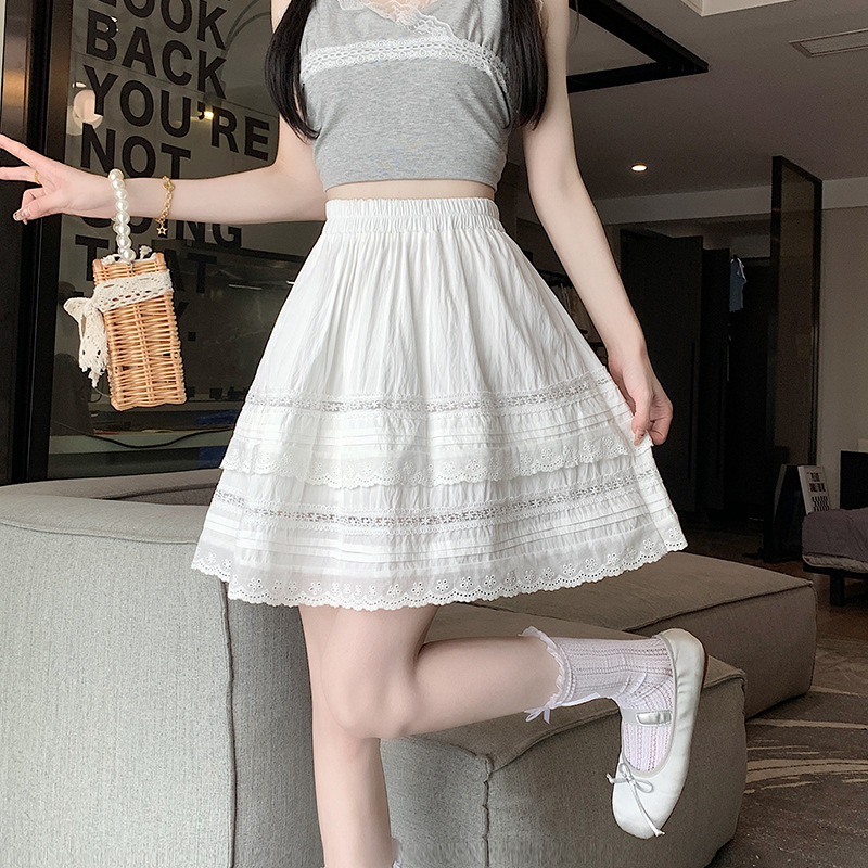 | nameOriginal | Real shot 2024 spring and summer Korean girlish all-match slim layer crochet lace cake skirt a word puffy skirt |