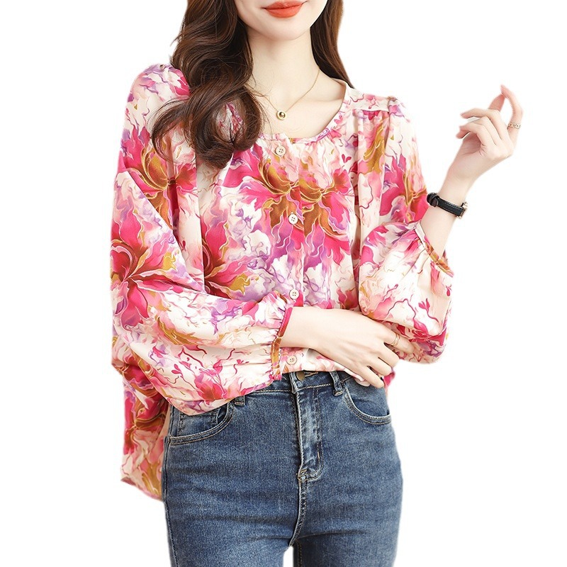 | nameOriginal | Real shot 2024 spring and summer new long-sleeved chiffon shirt top women's Korean-style slimming floral commuter shirt Women |