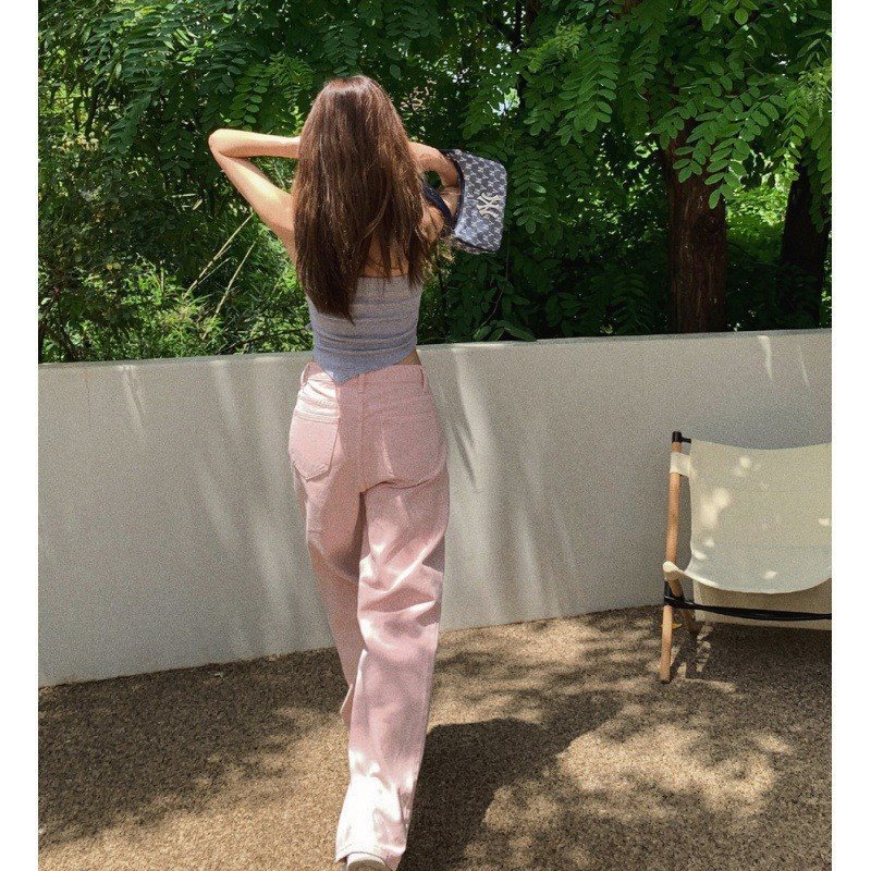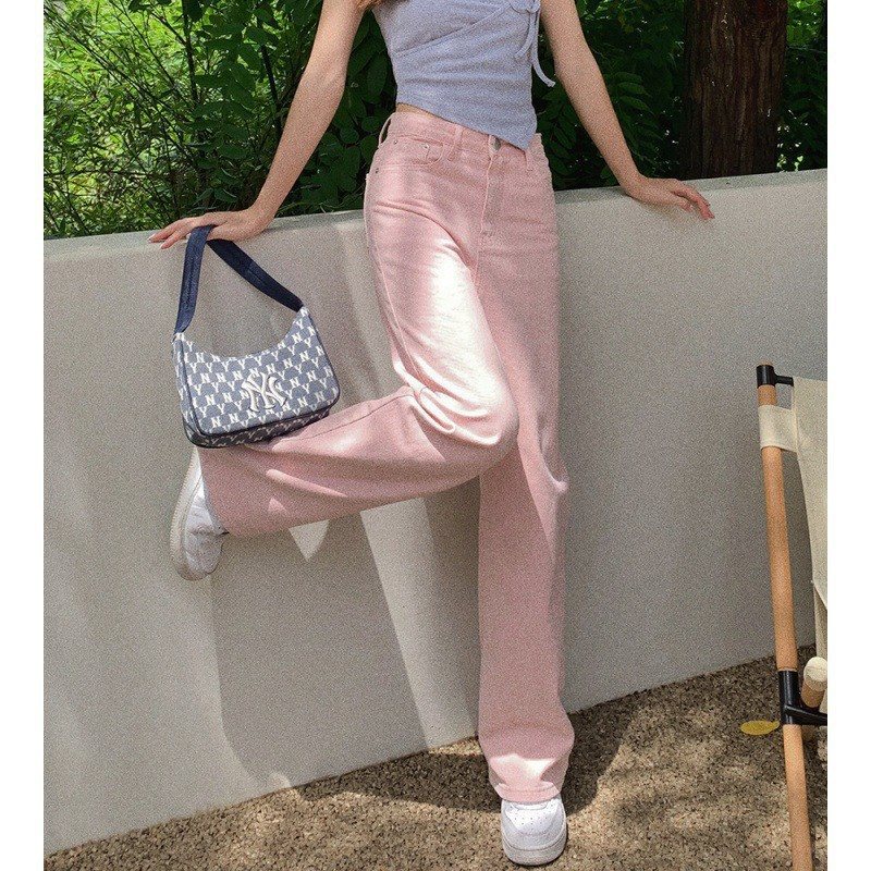 | nameOriginal | Real shot 2024 spring and summer pink jeans women's Korean high waist slim wide leg pants loose straight trousers |