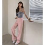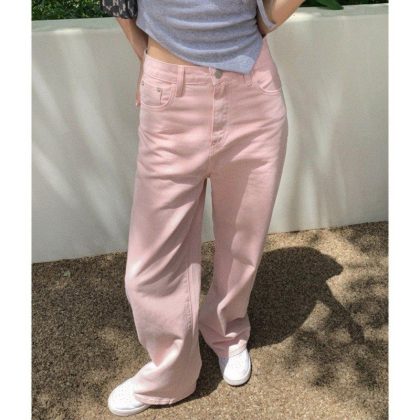 | nameOriginal | Real shot 2024 spring and summer pink jeans women's Korean high waist slim wide leg pants loose straight trousers |