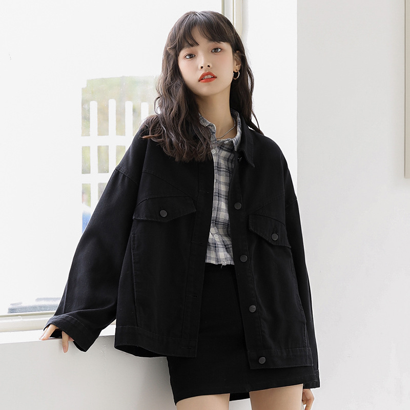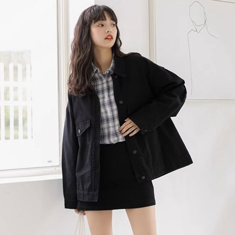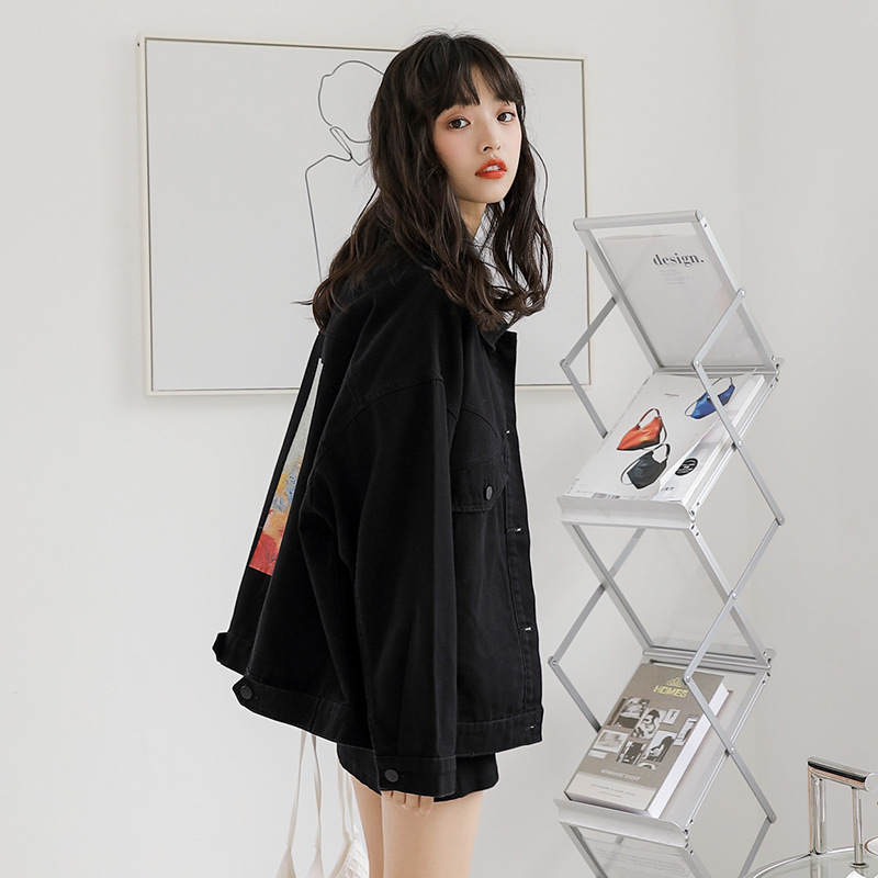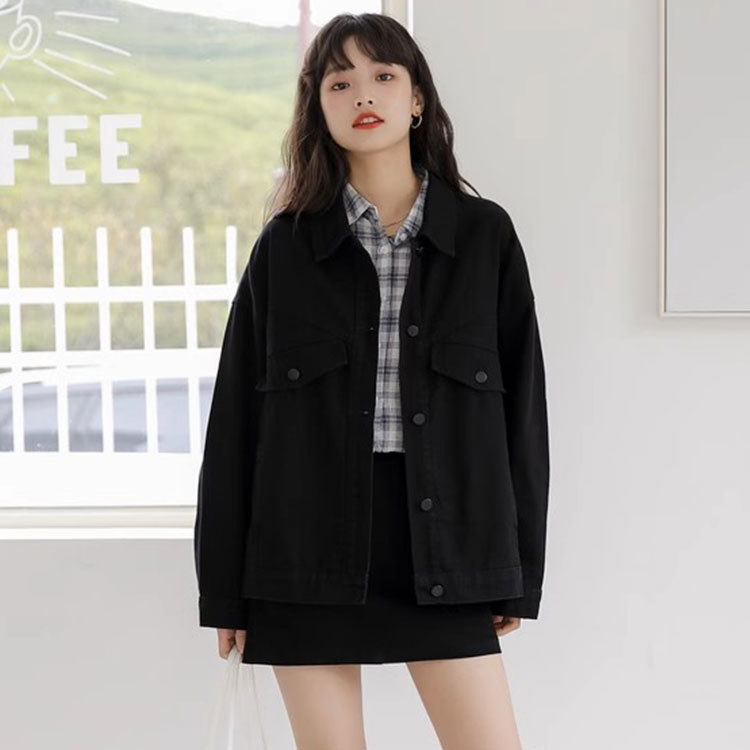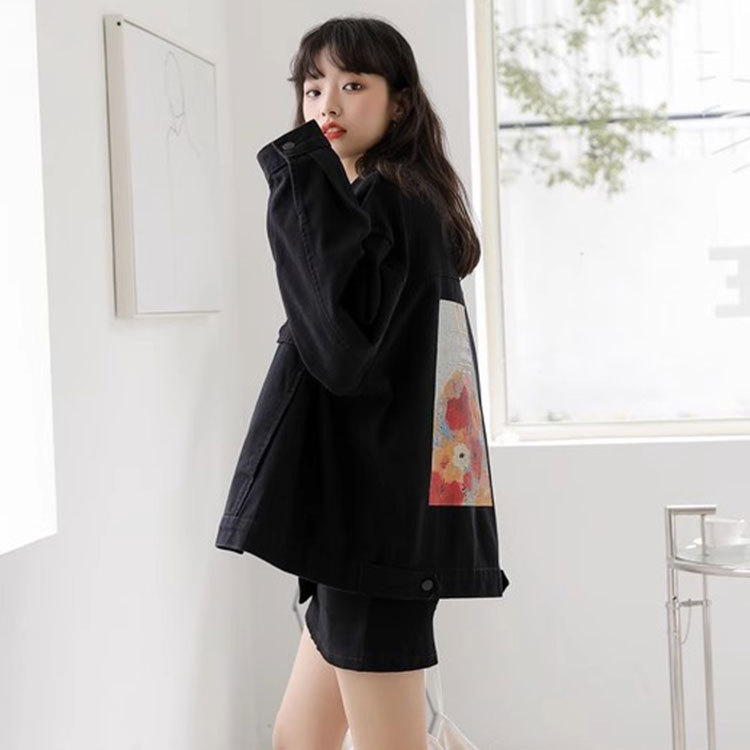 Real shot 2024 spring new Korean style loose back patch Hong Kong style Denim coat women’s long-sleeved workwear top