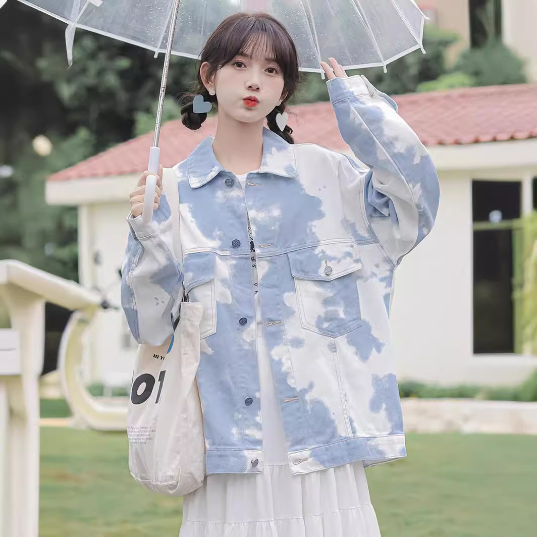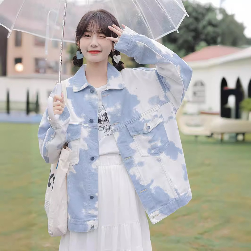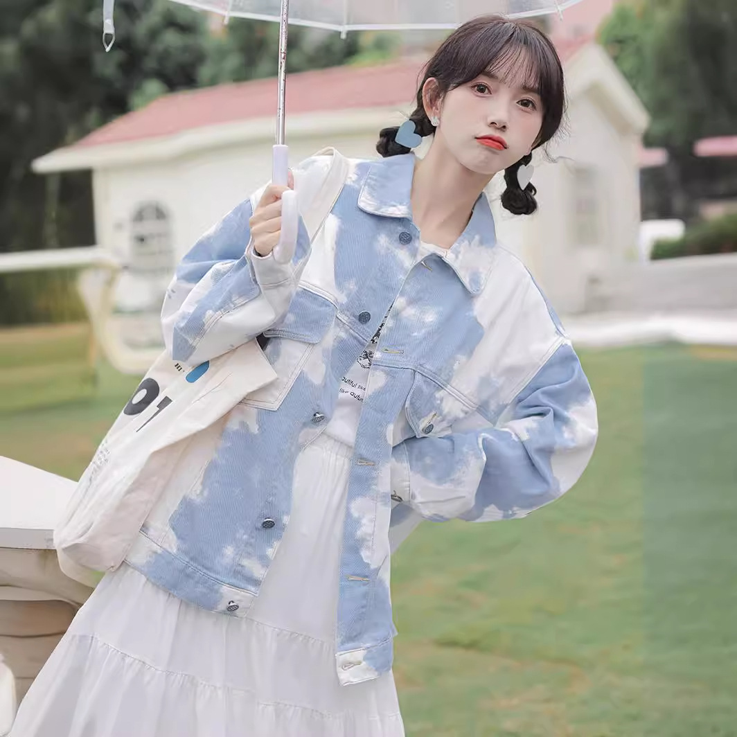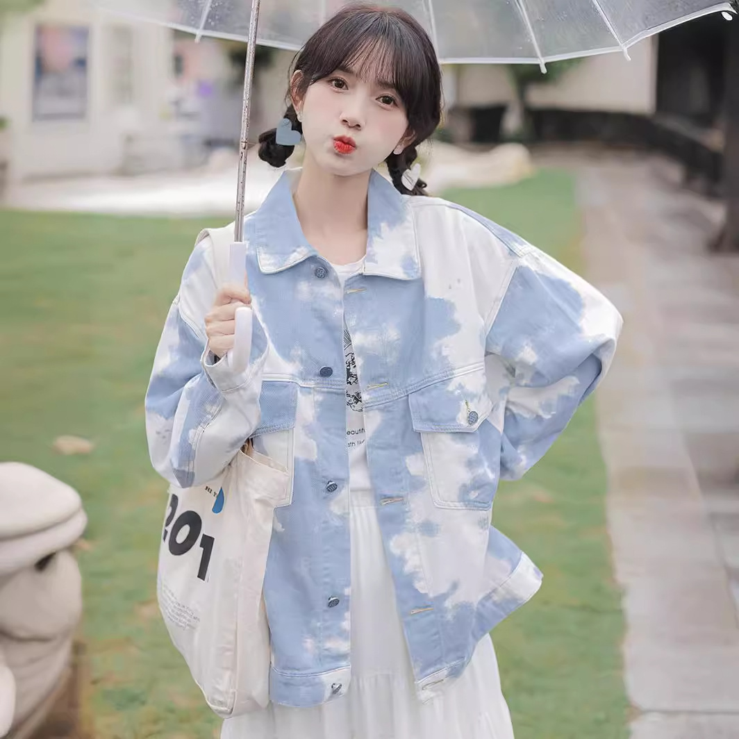 Real shot 2024 spring new opening season Korean style versatile loose color matching Denim coat women’s white denim jacket