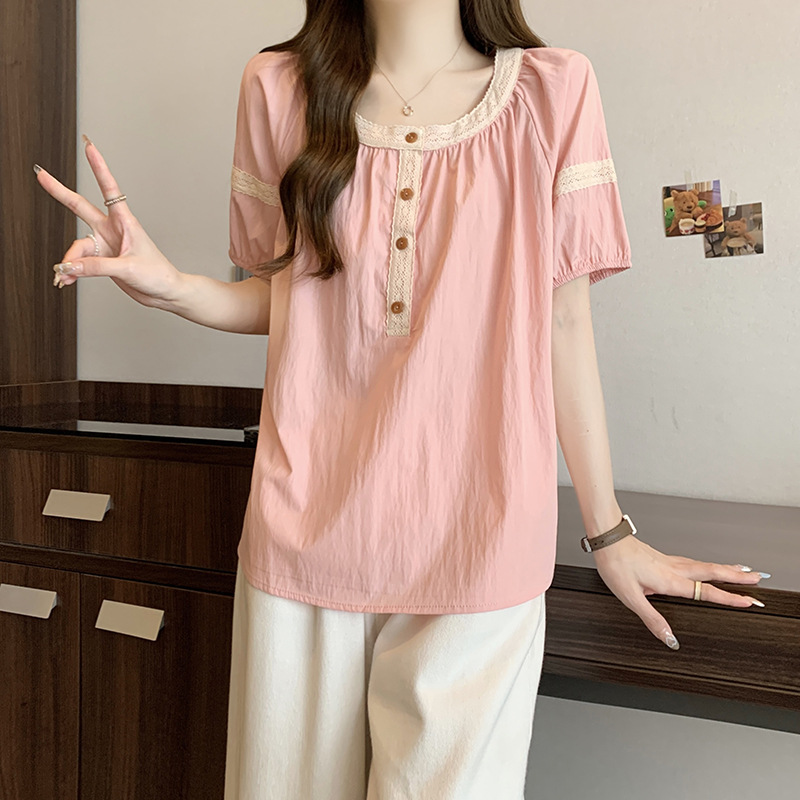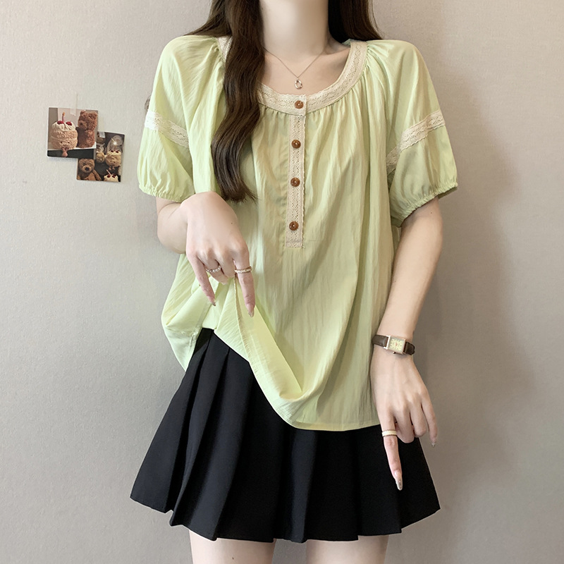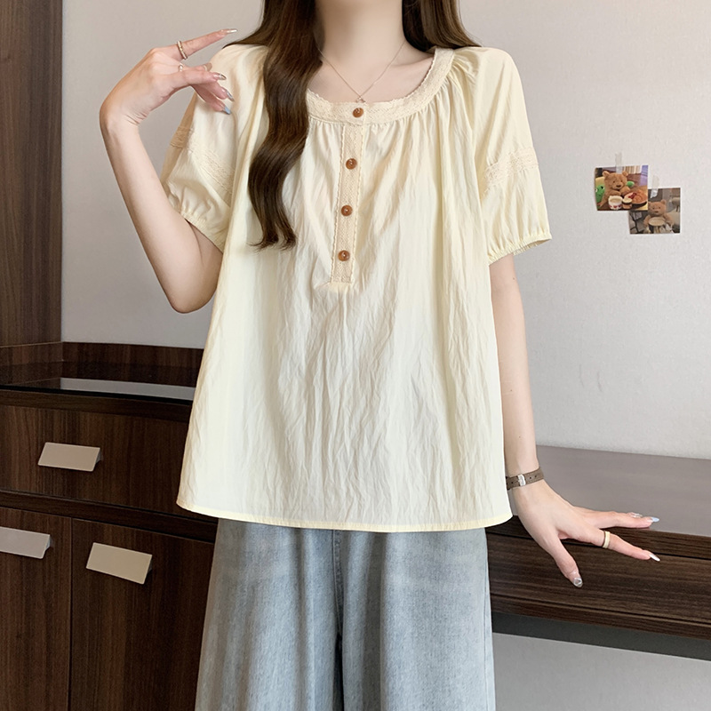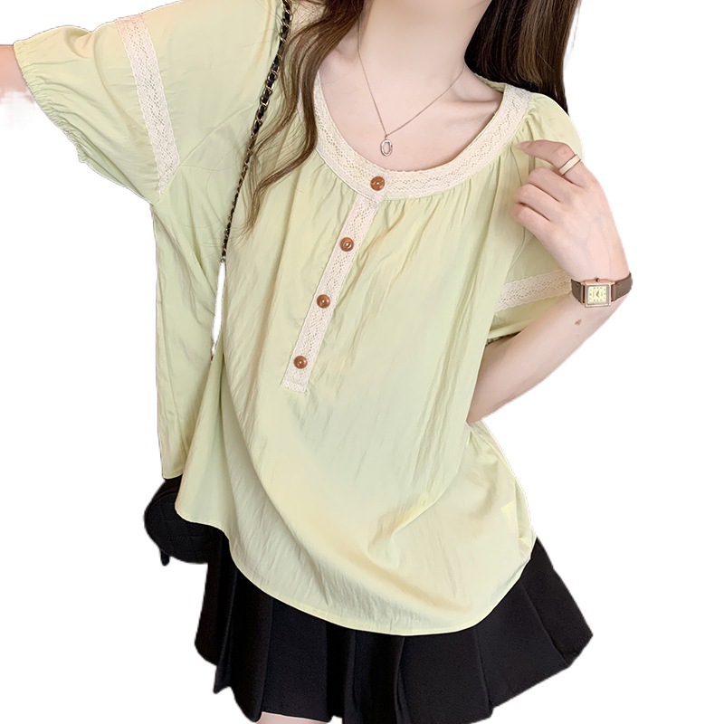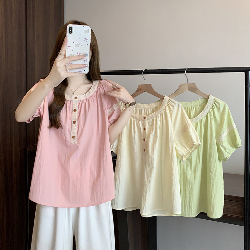 | nameOriginal | Real shot 2024 summer clothes new chubby girl plus size women's slim meat covered crew neck bubble sleeve shirt short sleeve shirt |