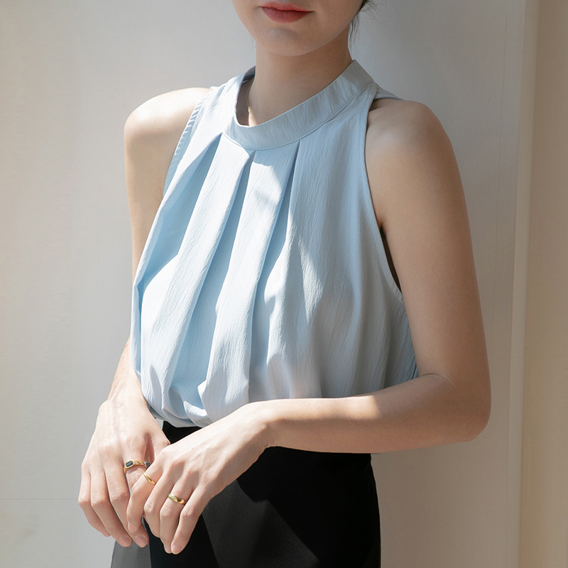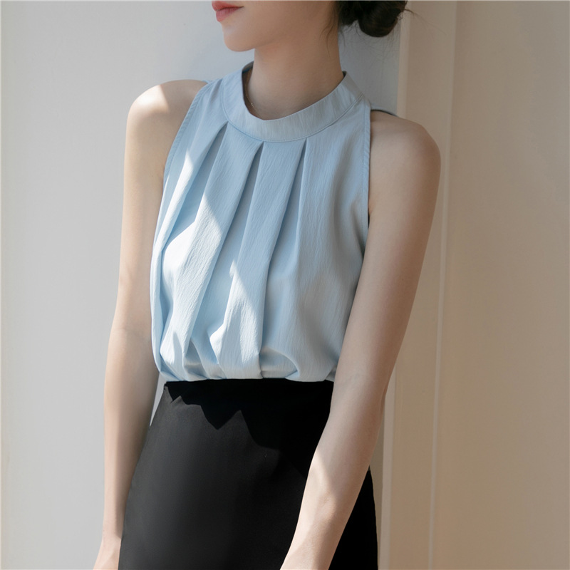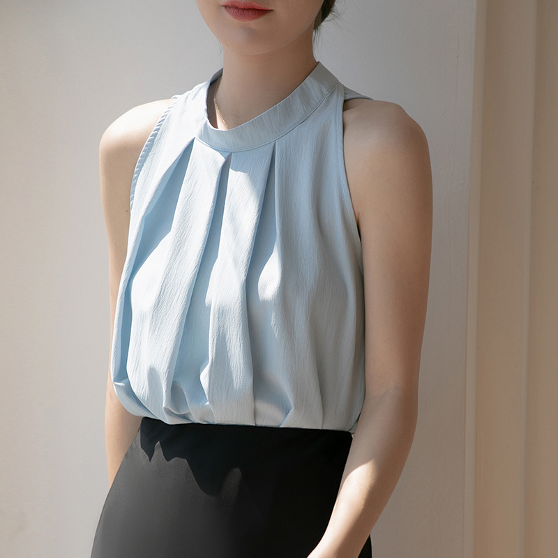 | nameOriginal | Real Shot 2024 Summer Elegant Commuting Vest Women's French Niche Shirt Blue Halter Top |