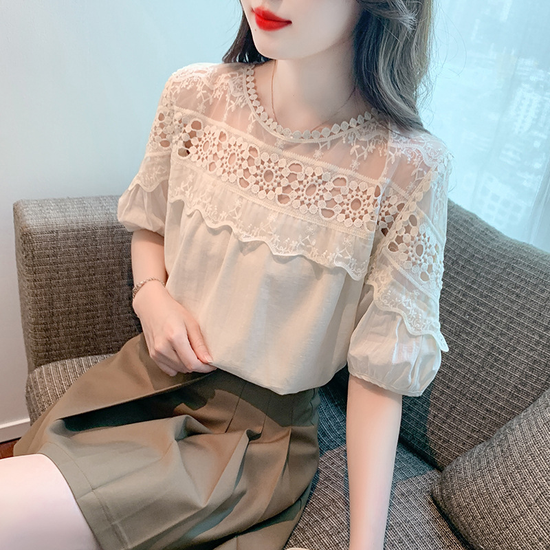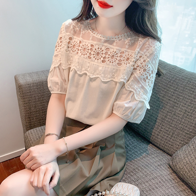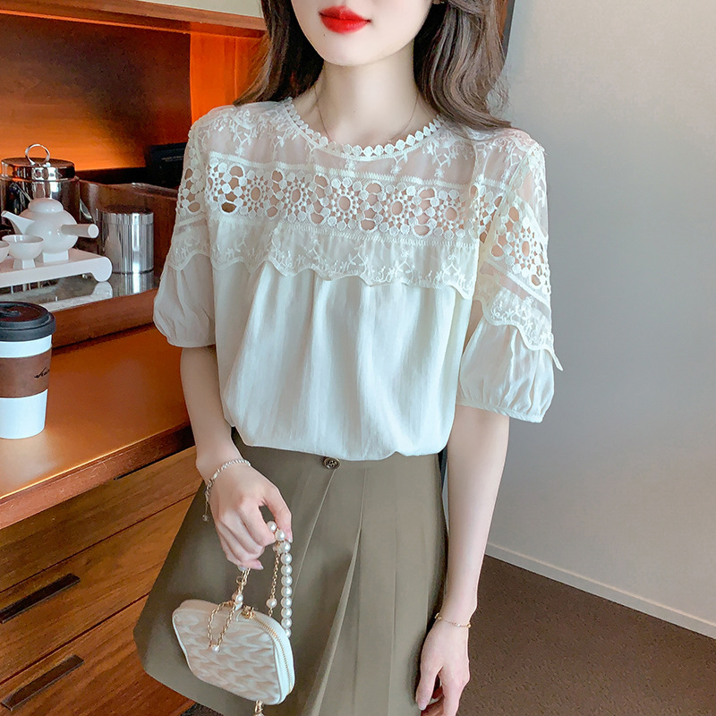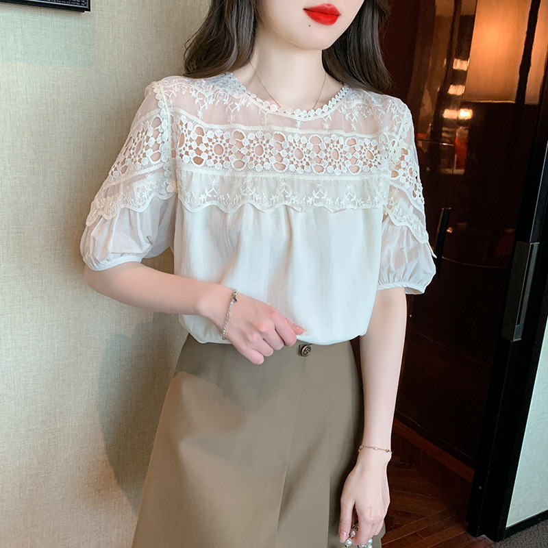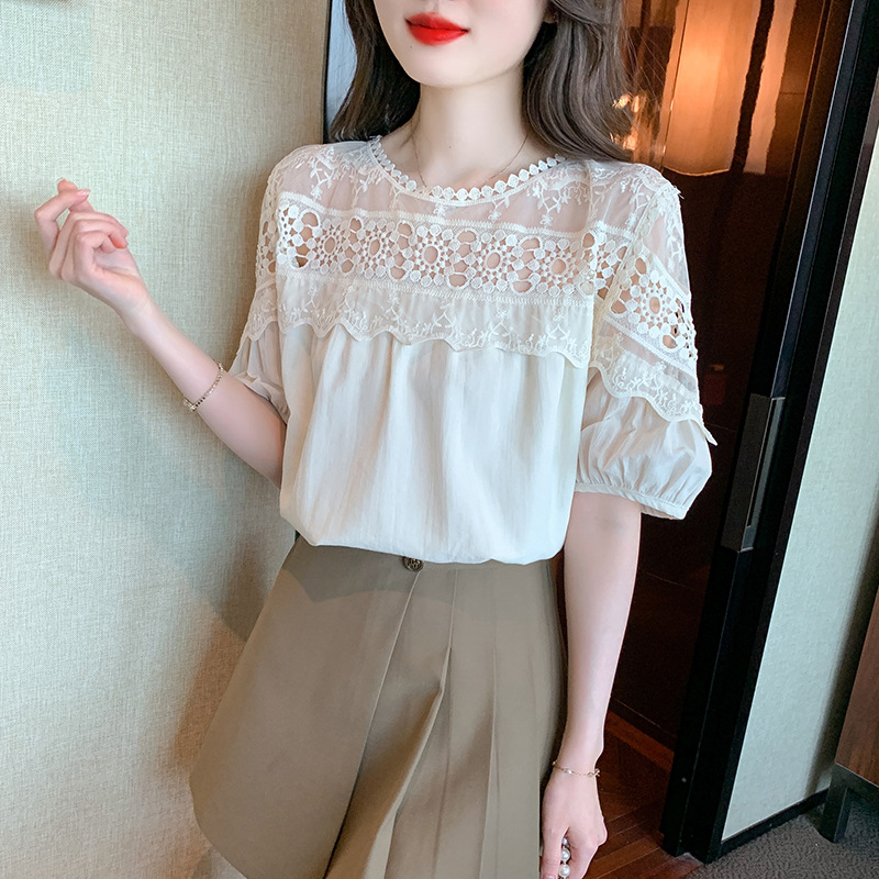 | nameOriginal | Real shot 2024 summer new all-match stitching short sleeve round neck doll shirt women's top summer |
