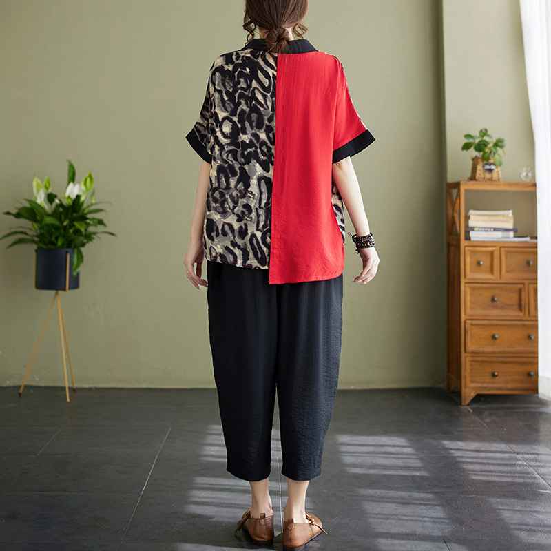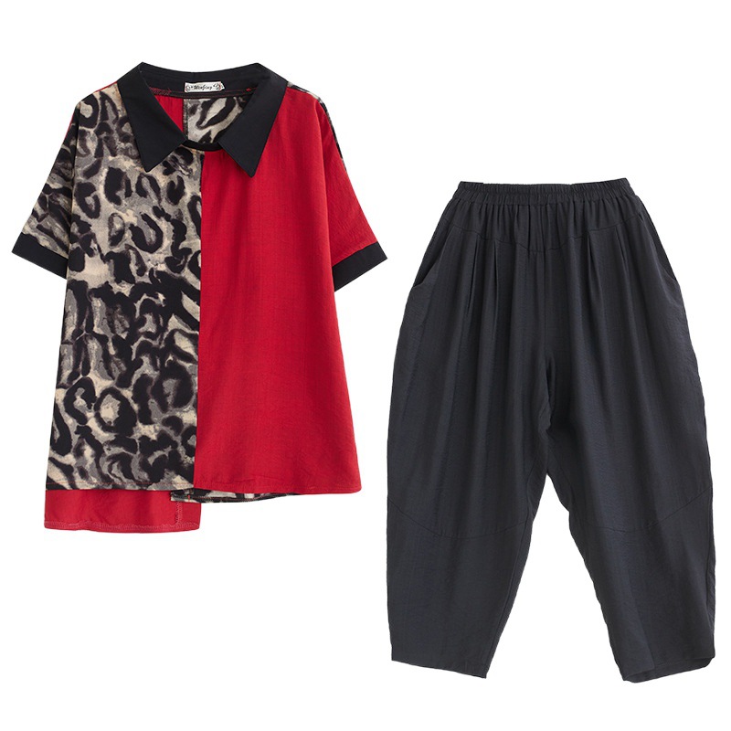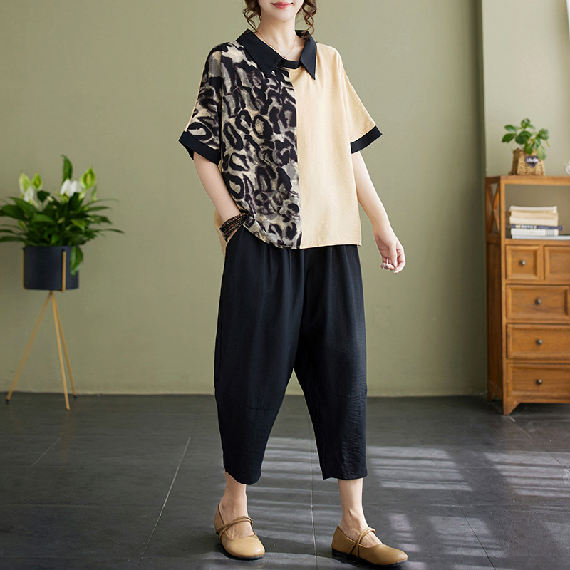 | nameOriginal | Real shot 2024 summer new art cotton and linen stitching loose size top elastic waist wide leg pants two-piece set |