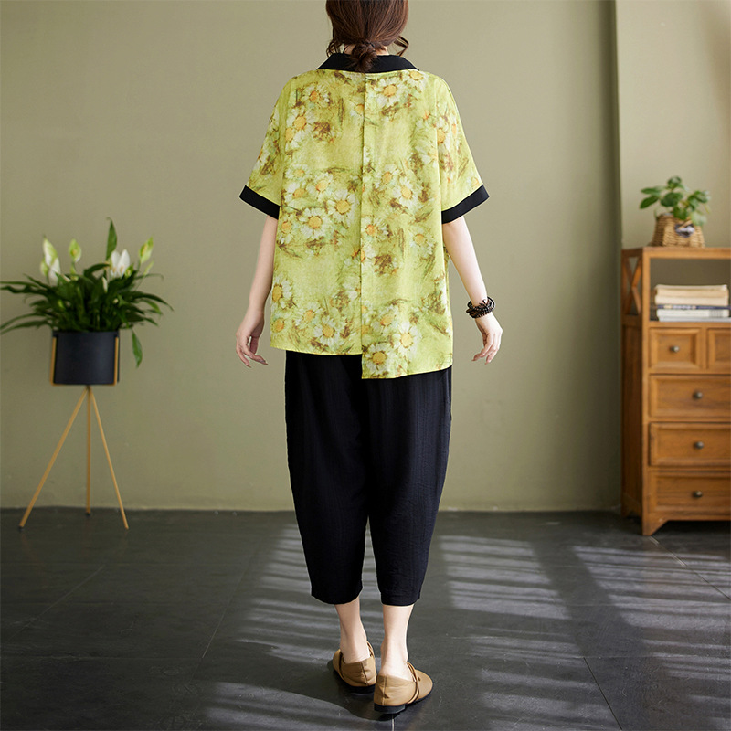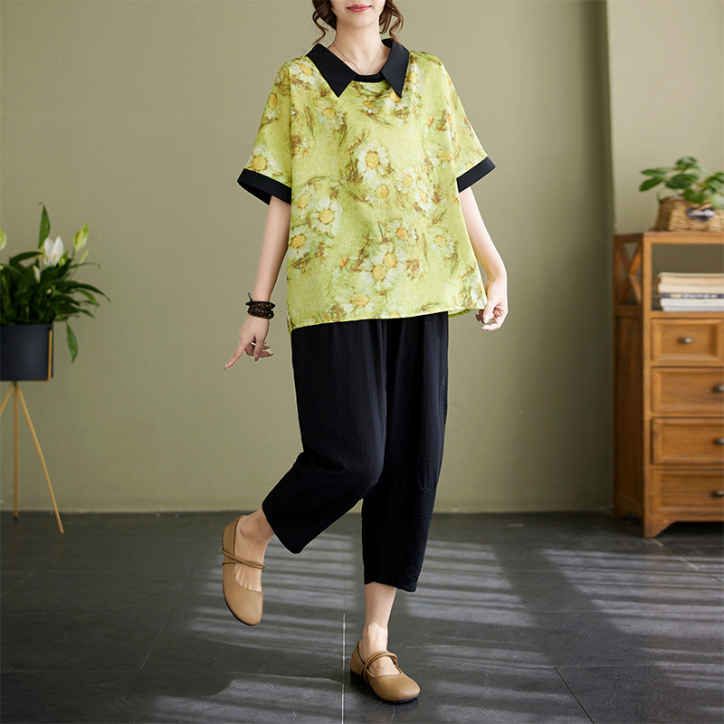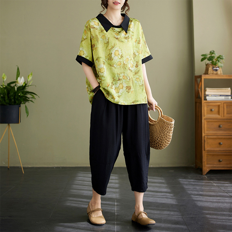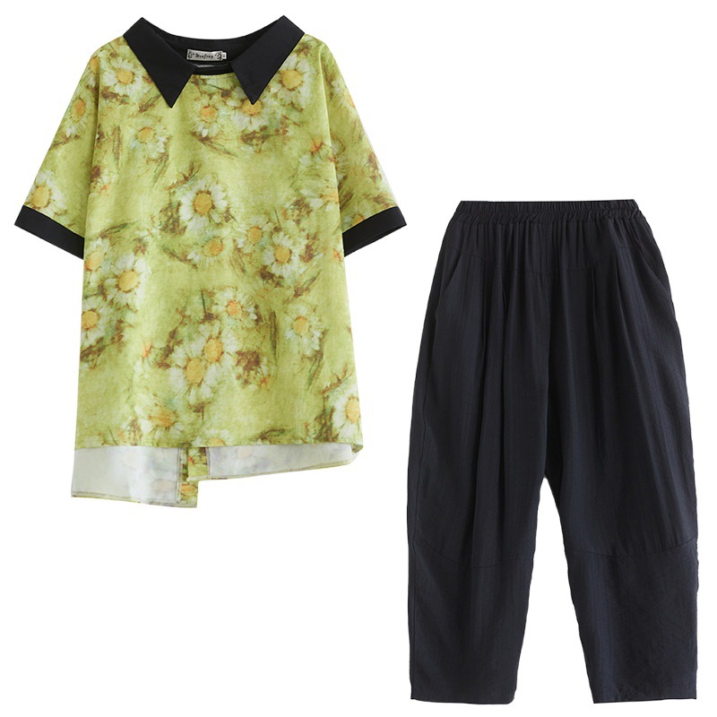 | nameOriginal | Real shot 2024 summer new artistic stitching loose large size top elastic waist wide leg pants two-piece set |
