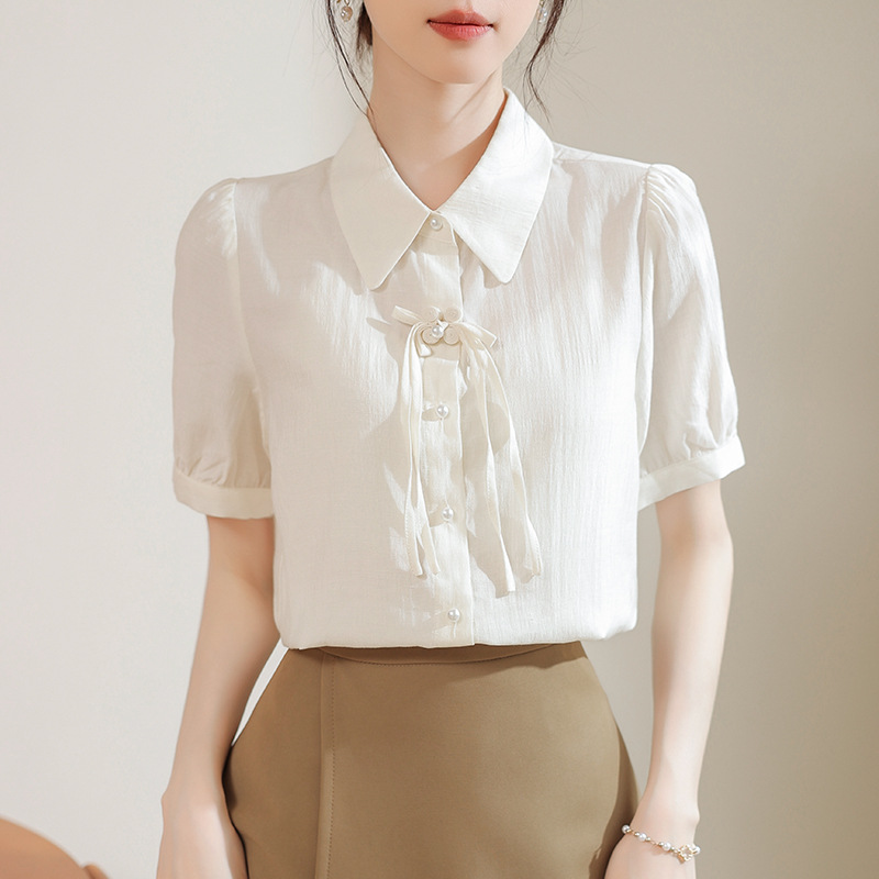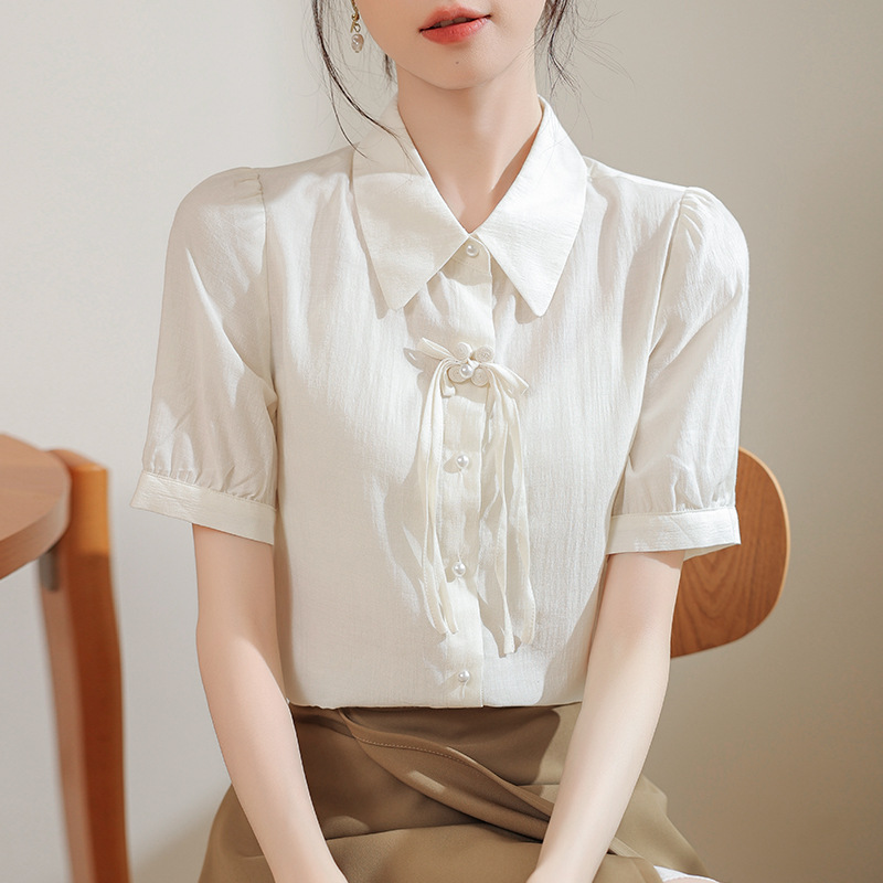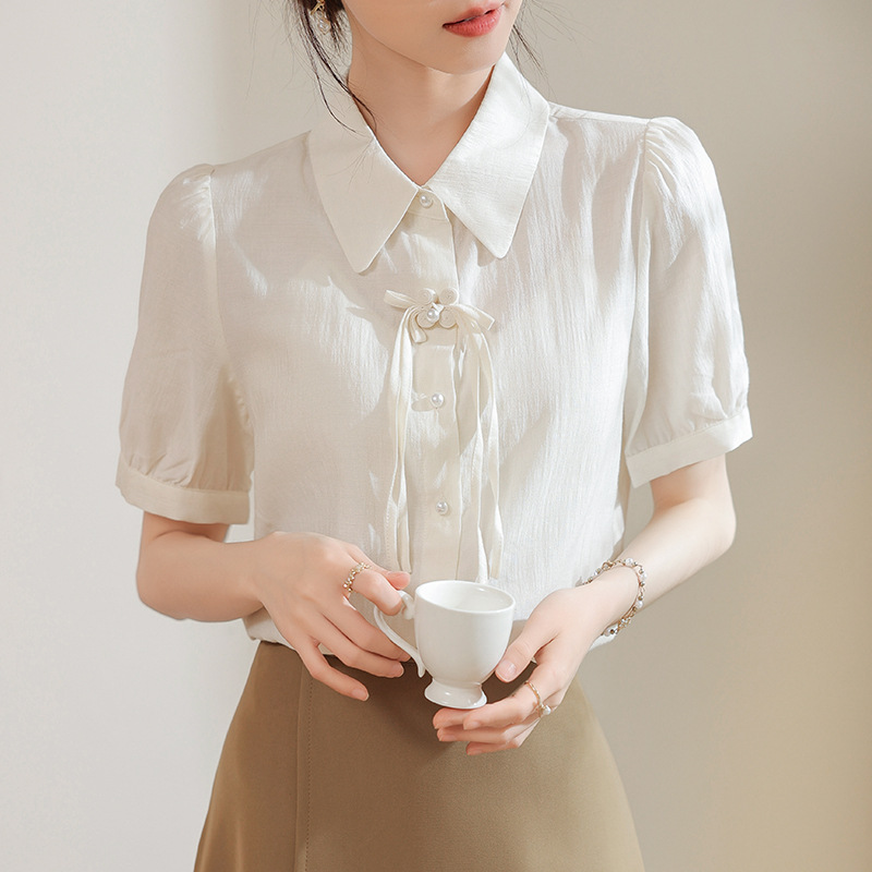 | nameOriginal | Real Shot 2024 Summer New Chinese Style National Style Bubble Sleeve Shirt Women's Design All-match Simple Commuter Top |