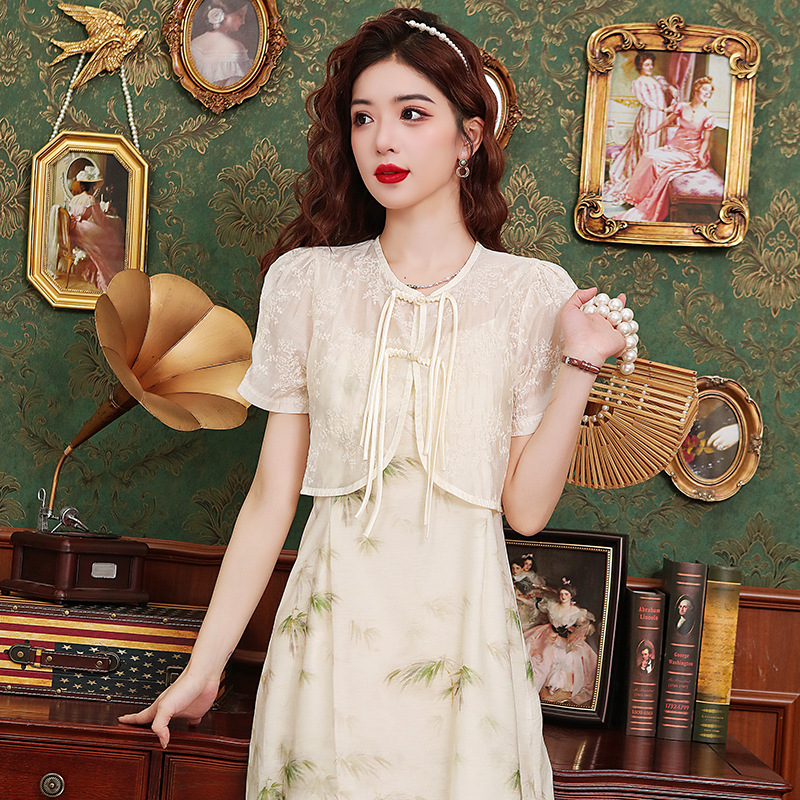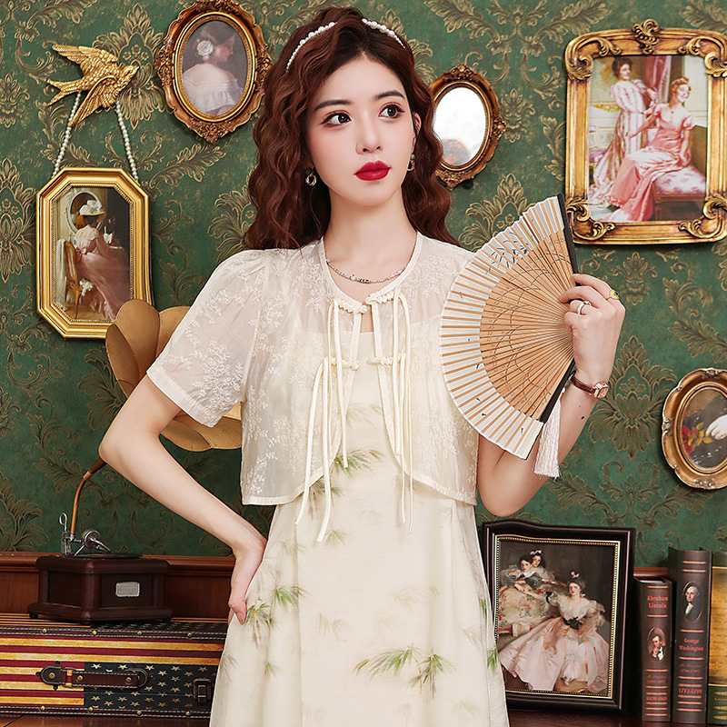 Real Shot 2024 Summer New Chinese Style National Style Embroidered Disc Buckle with Suspender Skirt Sunscreen Shawl Shirt Women