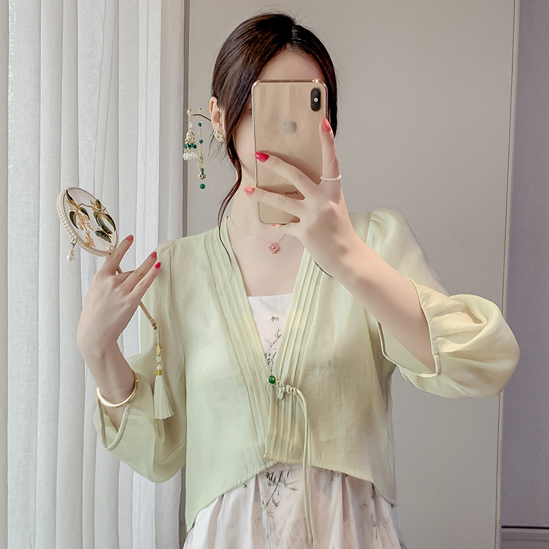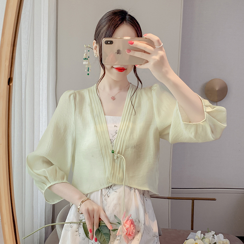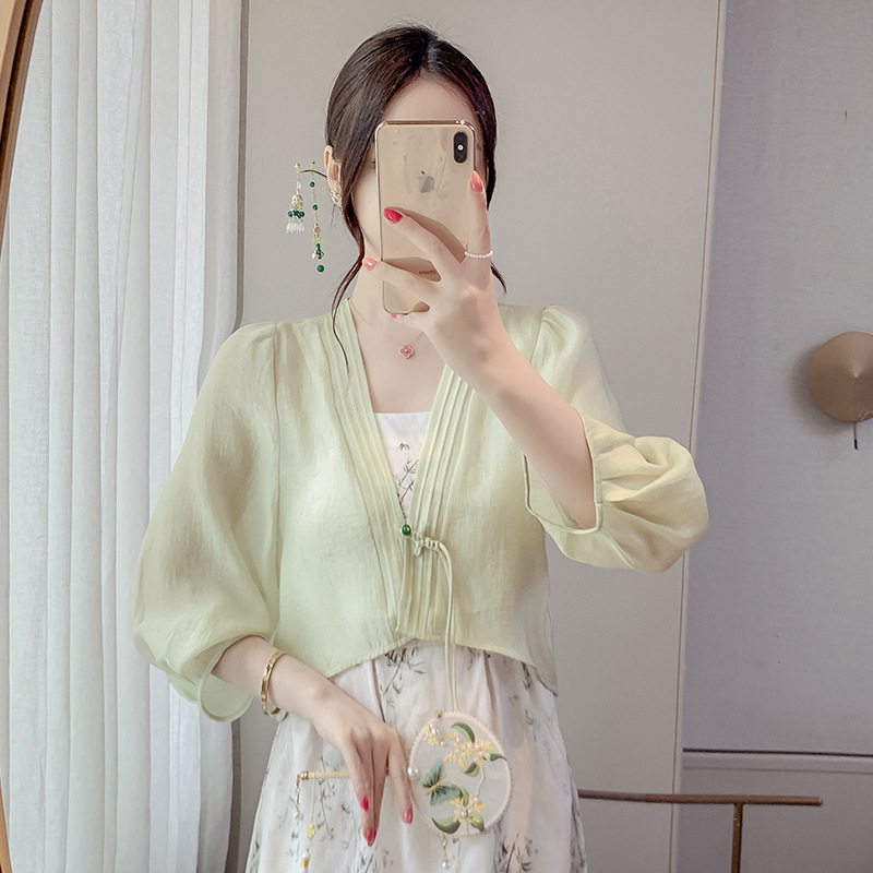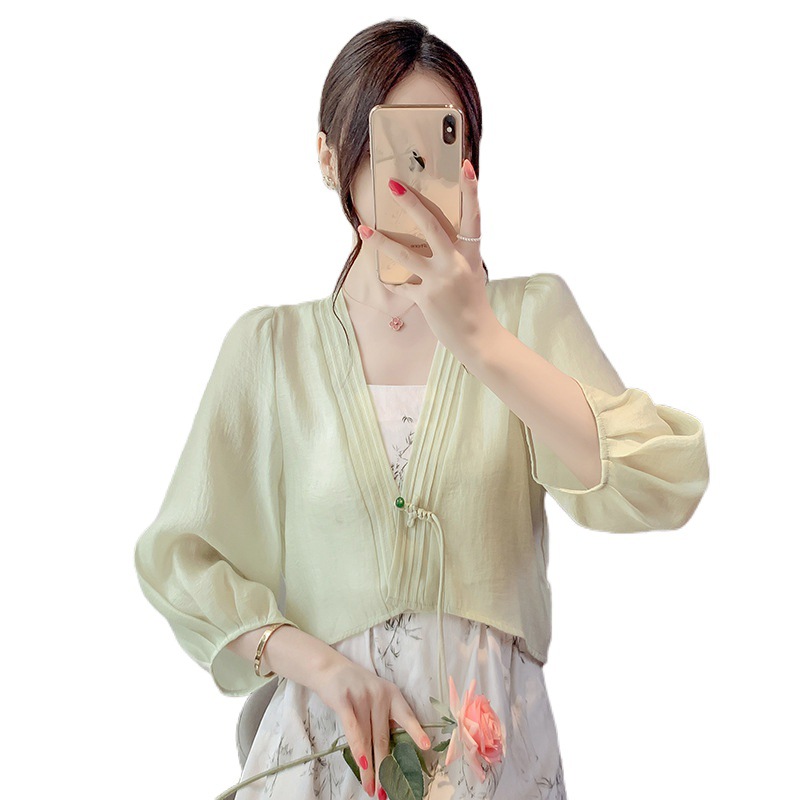 | nameOriginal | Real shot 2024 summer new Chinese style national style plate buckle design sunscreen shawl shirt with skirt |