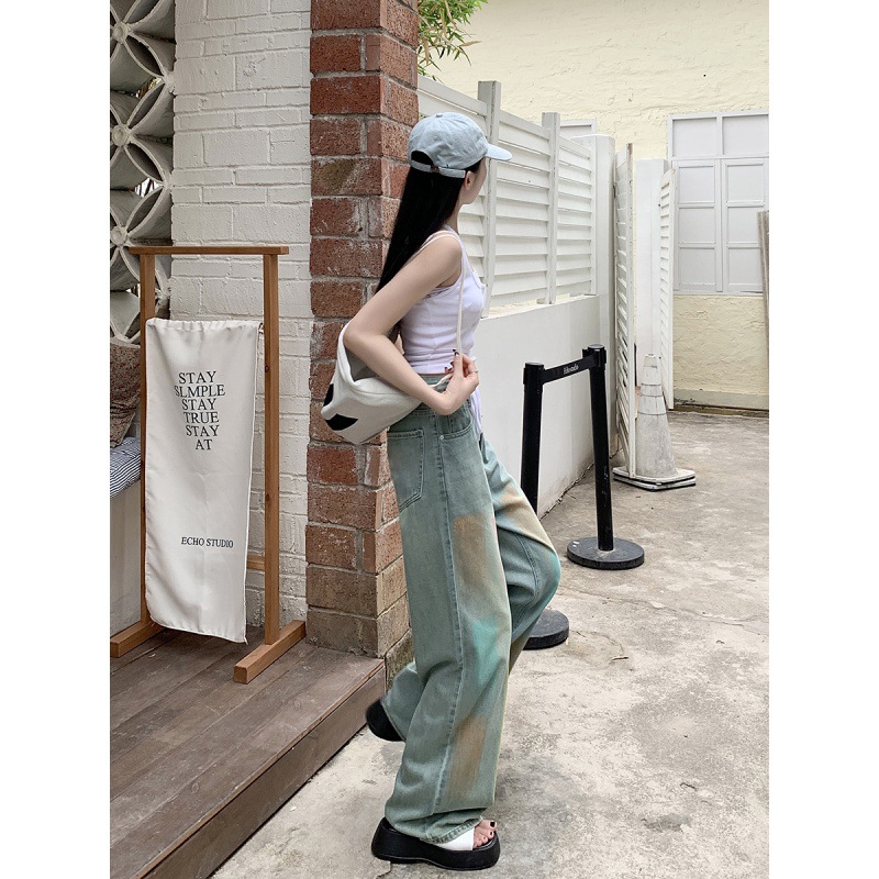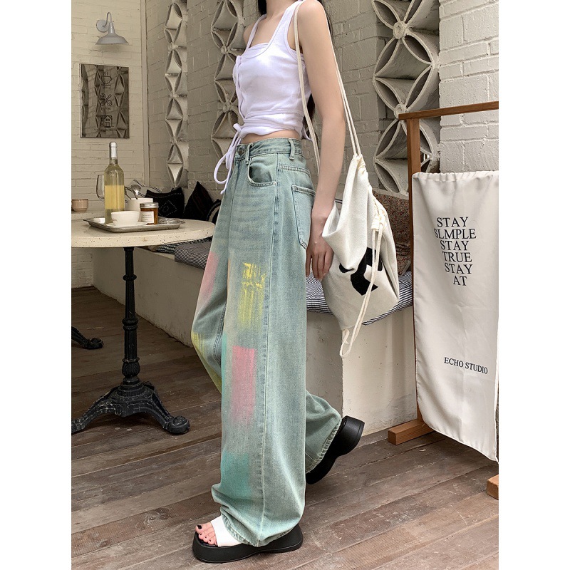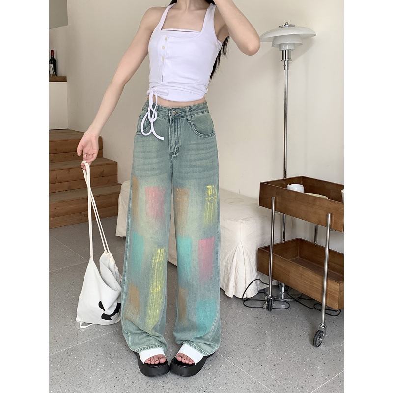 | nameOriginal | Real Shot 2024 Summer New Color Graffiti Wide Leg Jeans Women's High Waist Slimming Hangout Trousers |