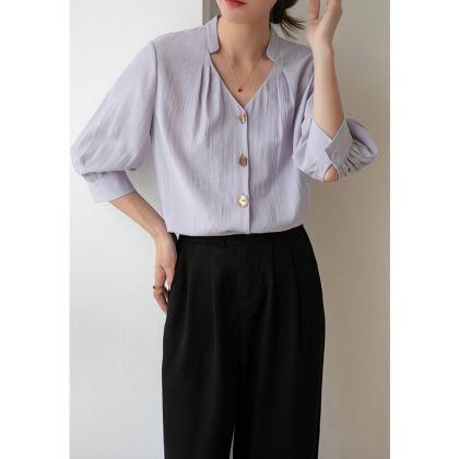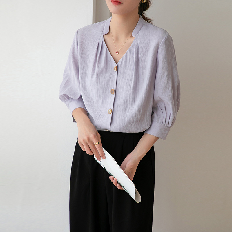 | nameOriginal | Real Shot 2024 Summer New French V-neck Loose Lazy Style Shirt Women's Spring and Summer Seven-point Sleeve Loose Top |