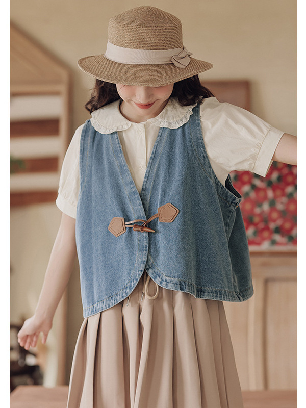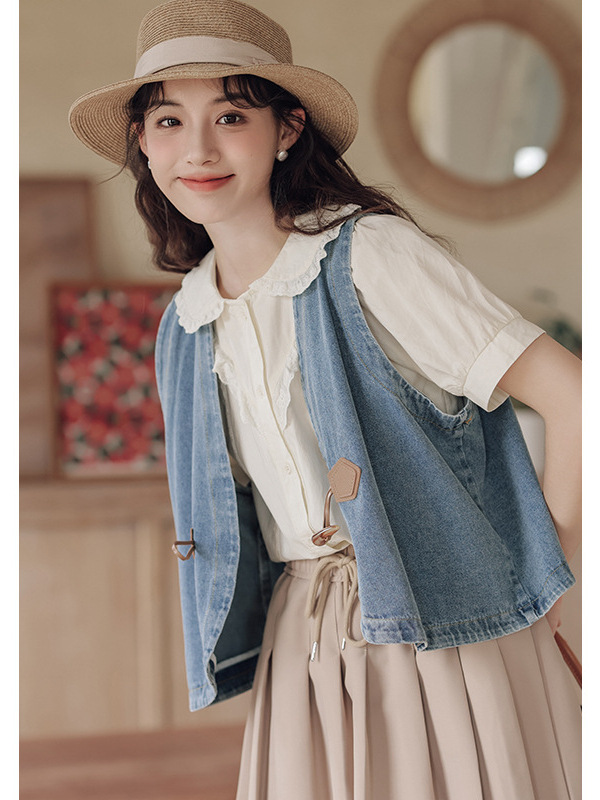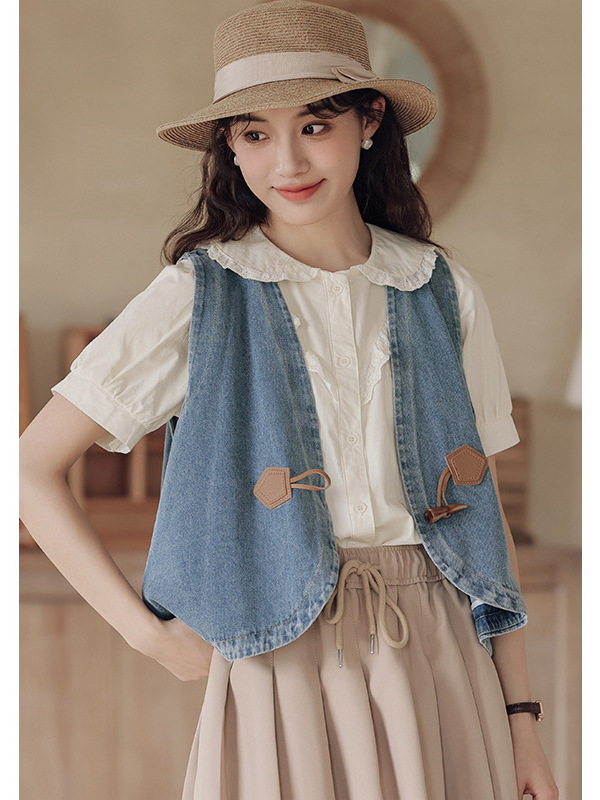 | nameOriginal | Real Shot 2024 Summer New Japanese All-match Casual Stacked Antique Cowboy Vest Cardigan Jacket |