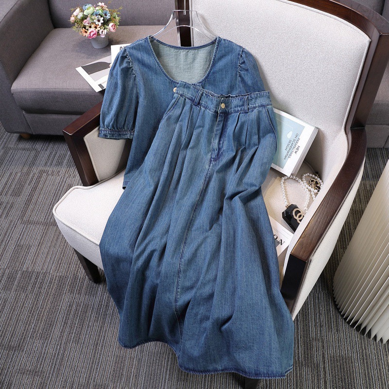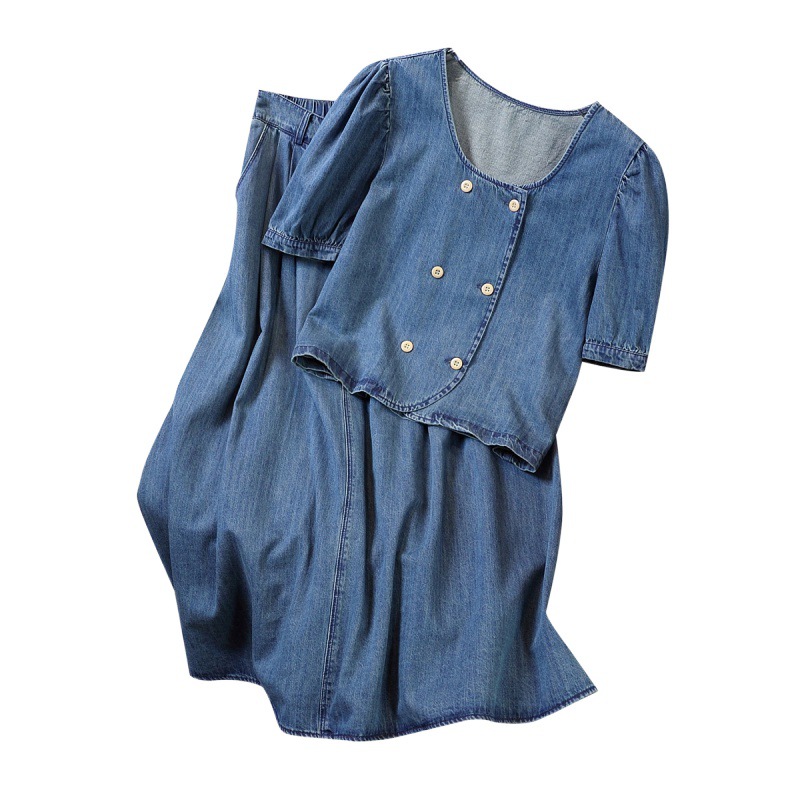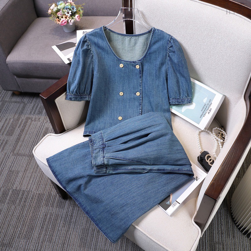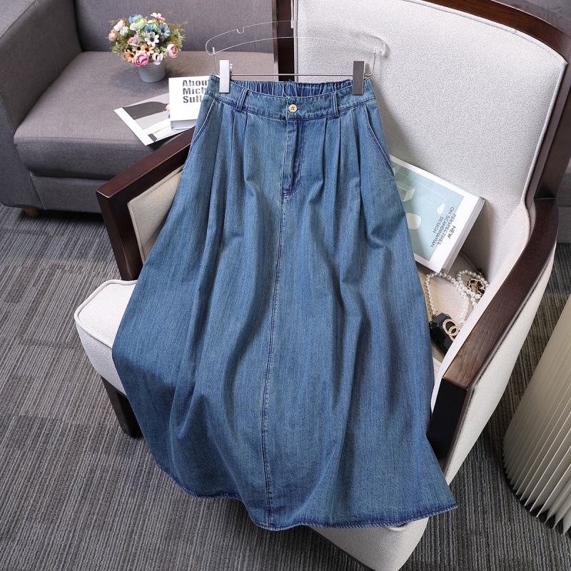 | nameOriginal | Real shot 2024 summer new Korean style slimming A- line skirt elegant Denim all-match top two-piece suit chubby girl |