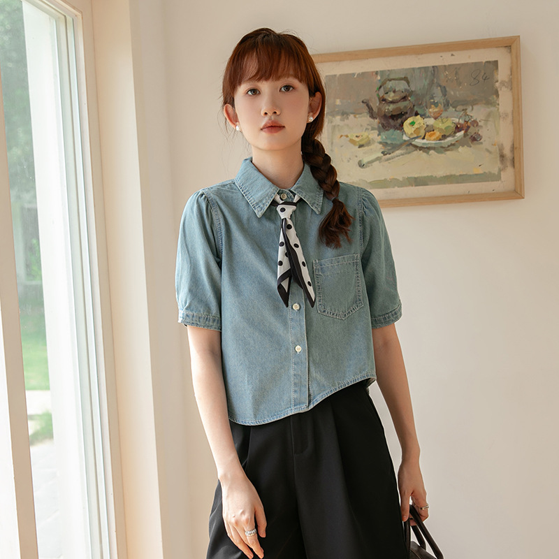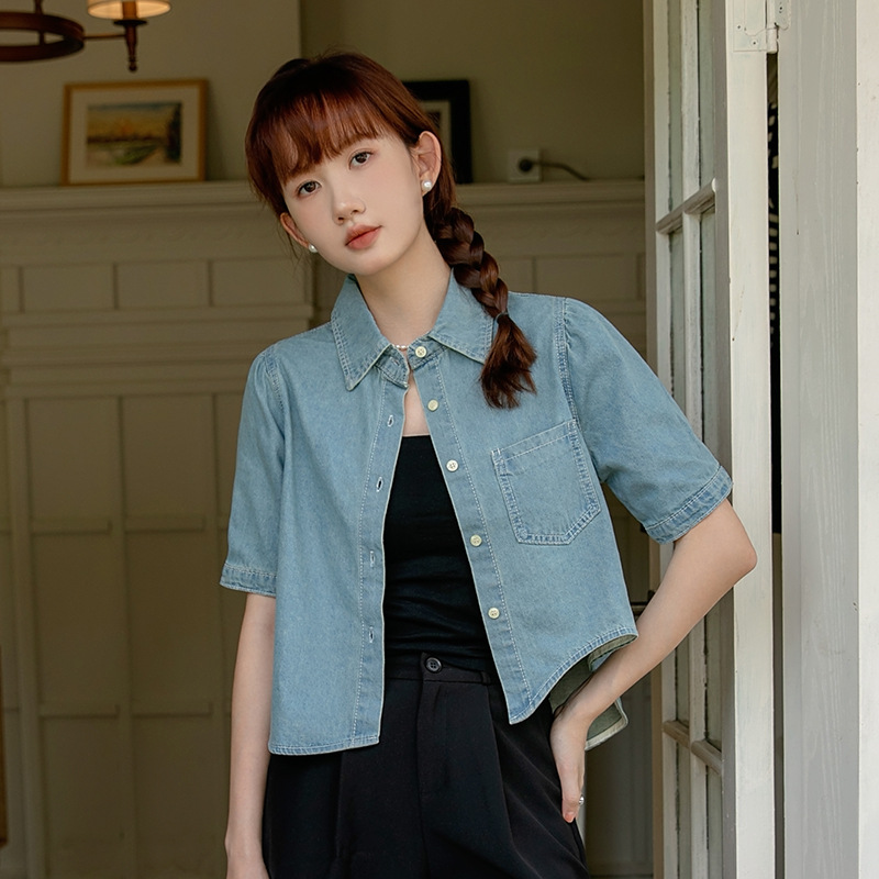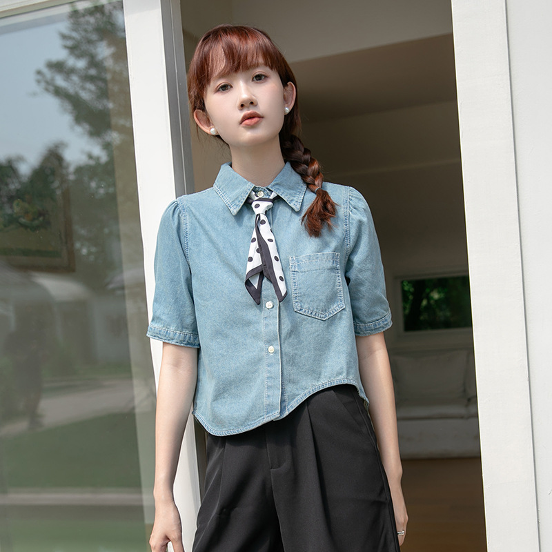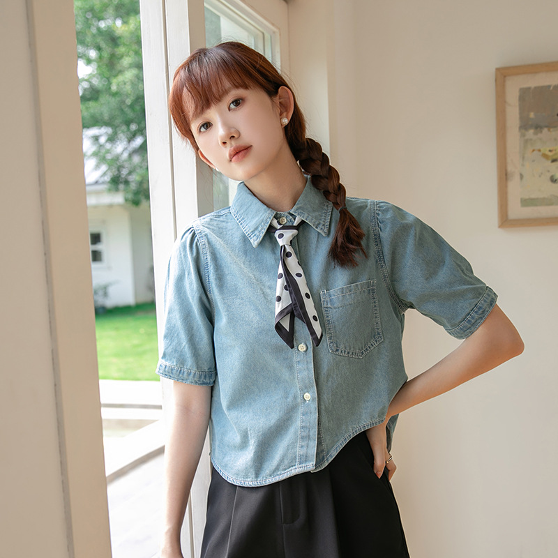| nameOriginal | Real shot 2024 summer new Korean version of loose irregular short washed vintage short Denim shirt top |