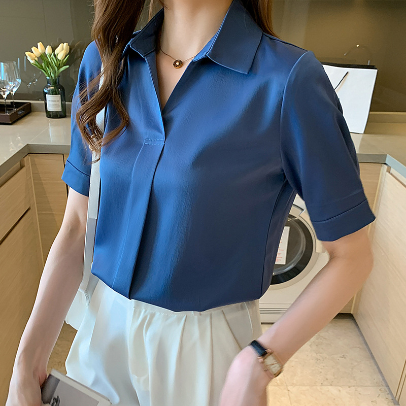 | nameOriginal | Real Shot 2024 Summer New Simple and Generous Blue Shirt Women's Slimming Short-sleeved Foreign Elegant Square Collar Top for Women |