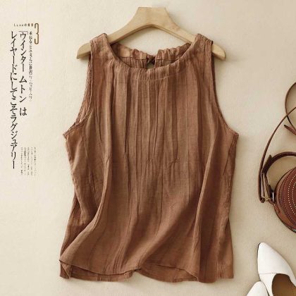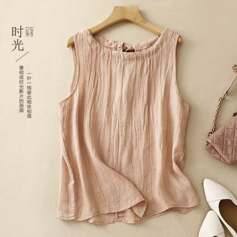 | nameOriginal | Real Shot 2024 Summer New Solid Color Pleated Tencel Small Vest Artistic Retro Cotton Linen Loose Sleeveless Top for Women |