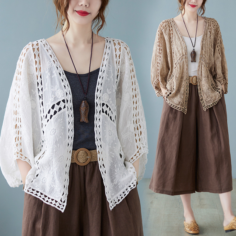 | nameOriginal | Real shot 2024 summer new vintage cropped cardigan air conditioning shirt embroidered hollow loose sunscreen bat sleeve coat women |
