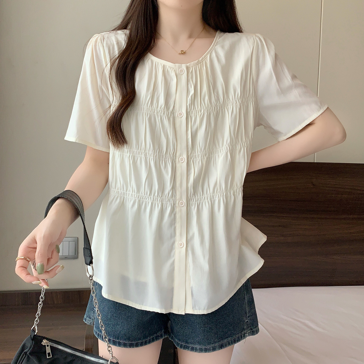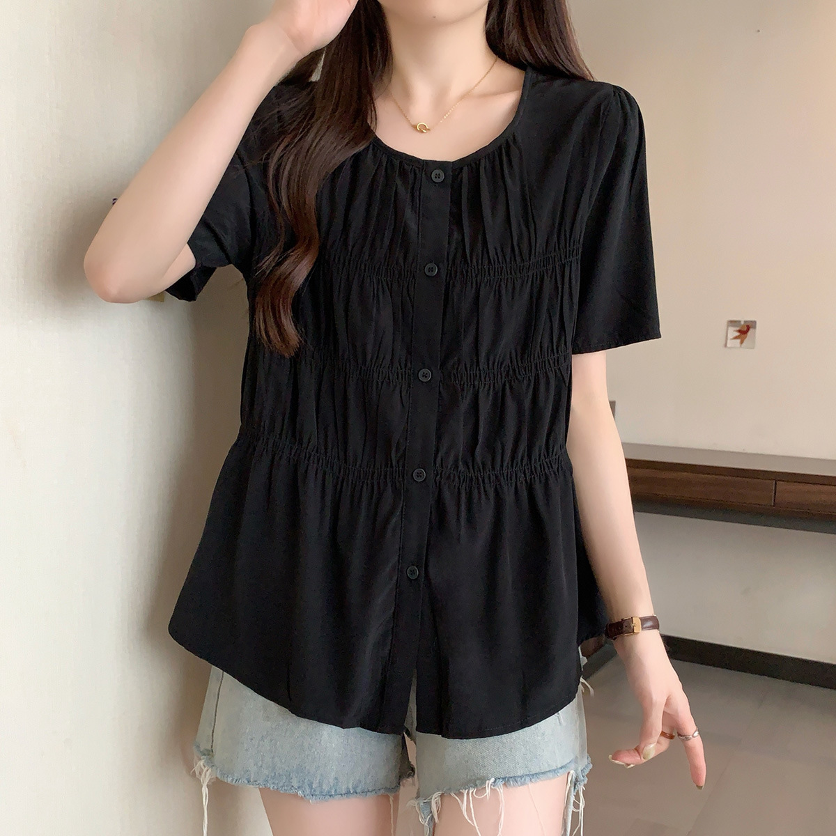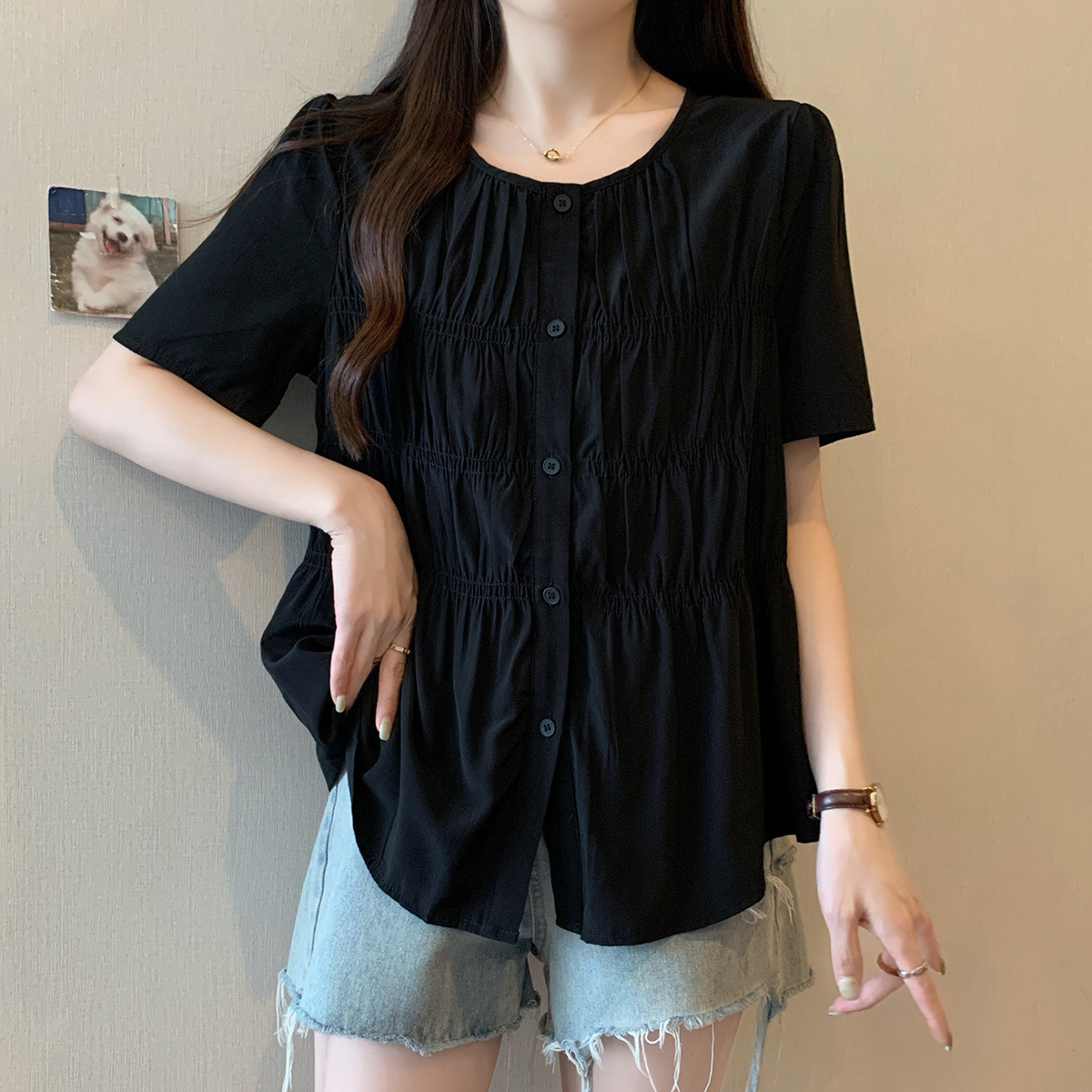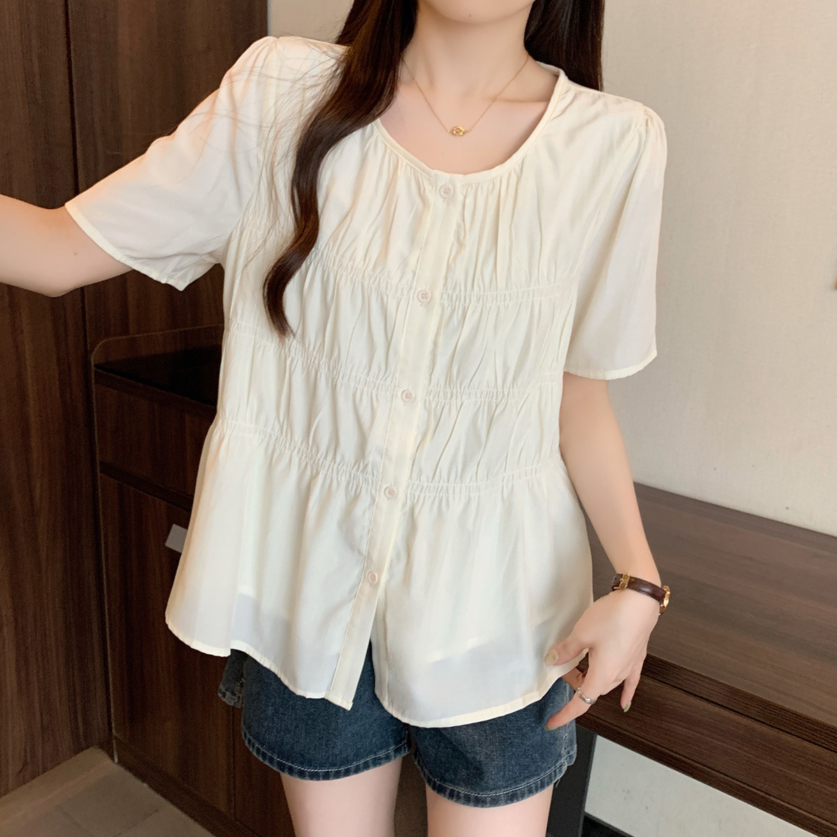 | nameOriginal | Real shot 63368 plus size women's clothing 2024 summer new French fashion shirt chubby girl covering flesh slimming top |