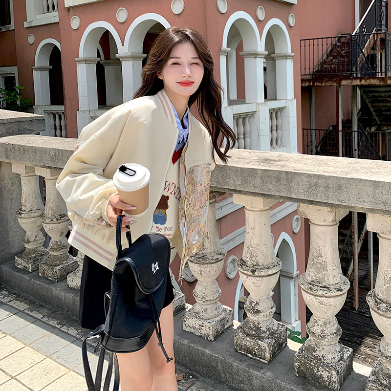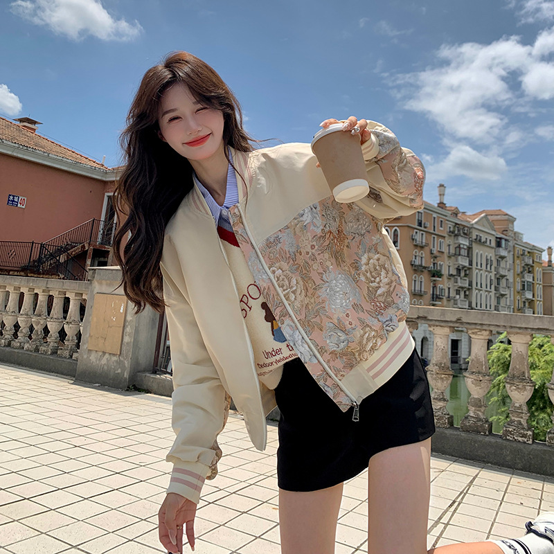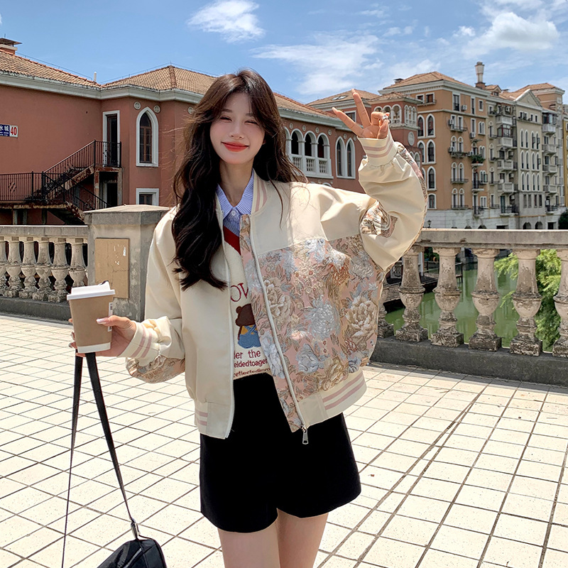 | nameOriginal | Real shot American baseball jacket women's short spring and autumn 2024 new small workwear motorcycle flight jacket |