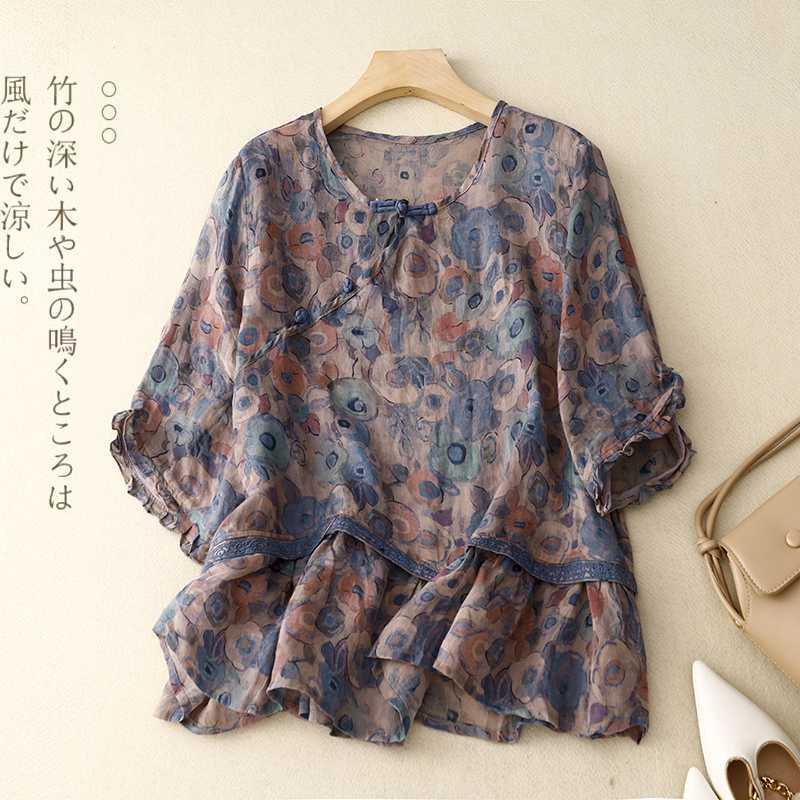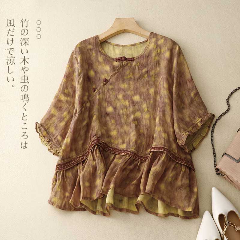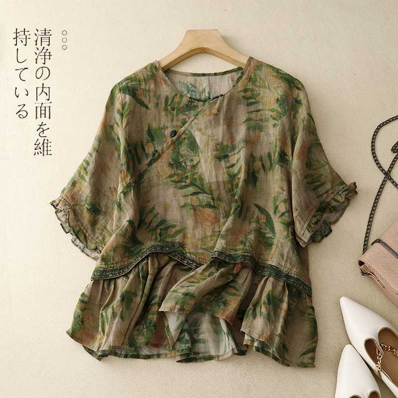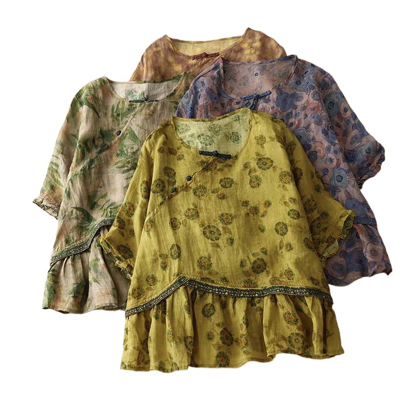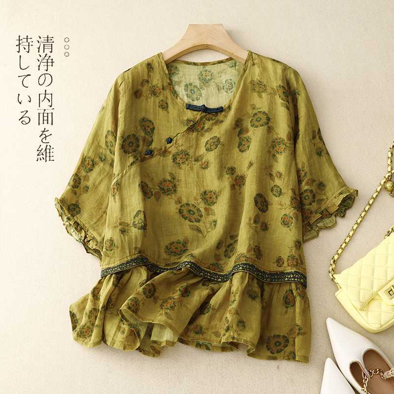 | nameOriginal | Real-shot Artistic Retro V-neck Ethnic Embroidered Cotton and Linen Short-sleeved T-shirt Women's Chinese-style Buckle Doll Shirt |