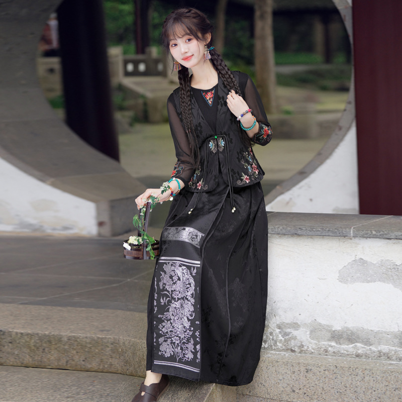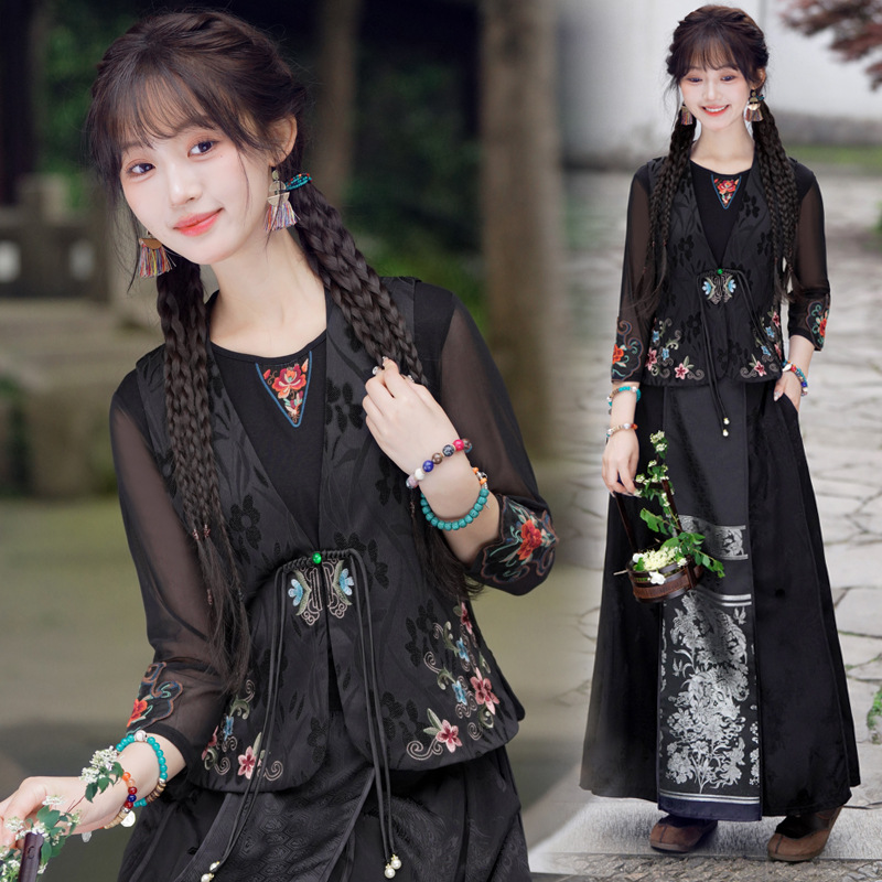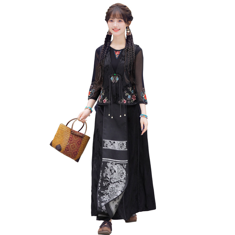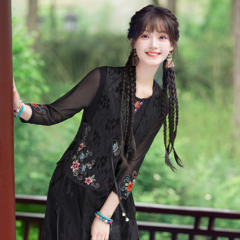 Real shot autumn and winter new Chinese silk and satin jacquard collar heavy industry embroidery all-match regular single-breasted vest