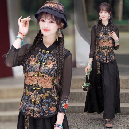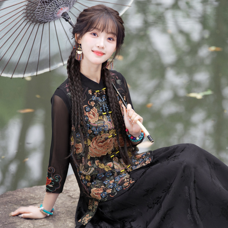 Real shot autumn and winter new Chinese silk and satin jacquard collar heavy industry embroidery all-match regular single-breasted vest