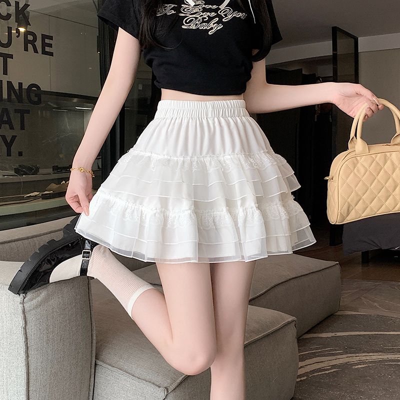 | nameOriginal | Real shot ballet style white cake skirt women's 2024 summer fairy mesh tutu skirt lace A- line skirt |