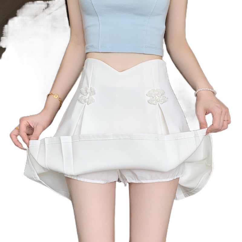 | nameOriginal | Real Shot Black Suit Skirt Women's Xia Xin Chinese Style Slim Pleated Skirt with Buckle High Waist Guofeng Short Skirt |