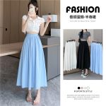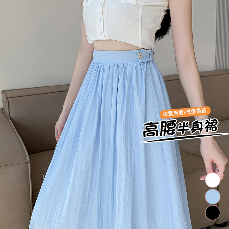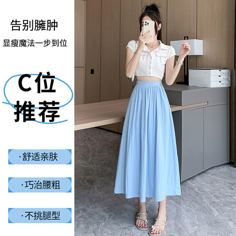 | nameOriginal | Real Shot Blue Pleated Skirt Women's 2024 New Spring and Summer Elasto Slim Mid-length A- line Large Swing Umbrella Skirt |