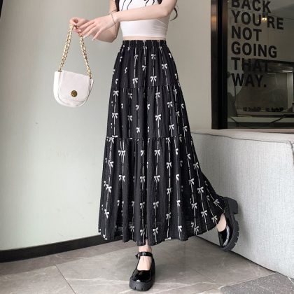 | nameOriginal | Real Shot Bow Printed Hip Covering Slim-fit Skirt Women's Summer New Pleated Large Swing A- line Skirt Long Skirt |
