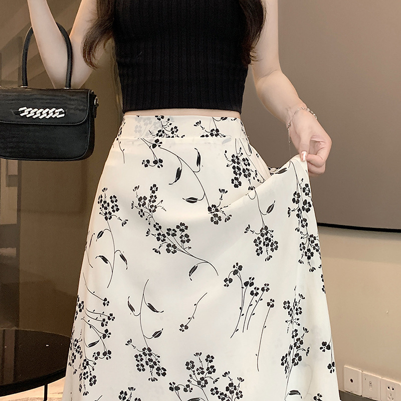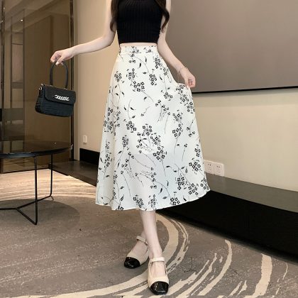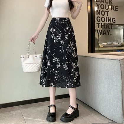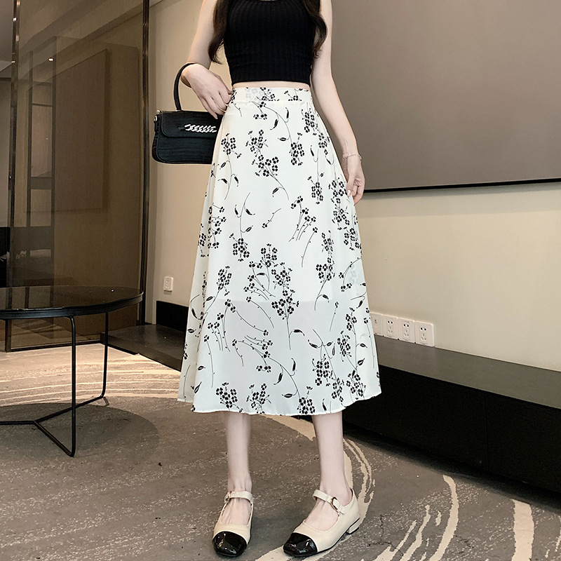 | nameOriginal | Real Shot Chiffon Floral Skirt Women's Summer New Korean-style High Waist Mid-length Large Swing A- line Skirt OL Style Skirt |