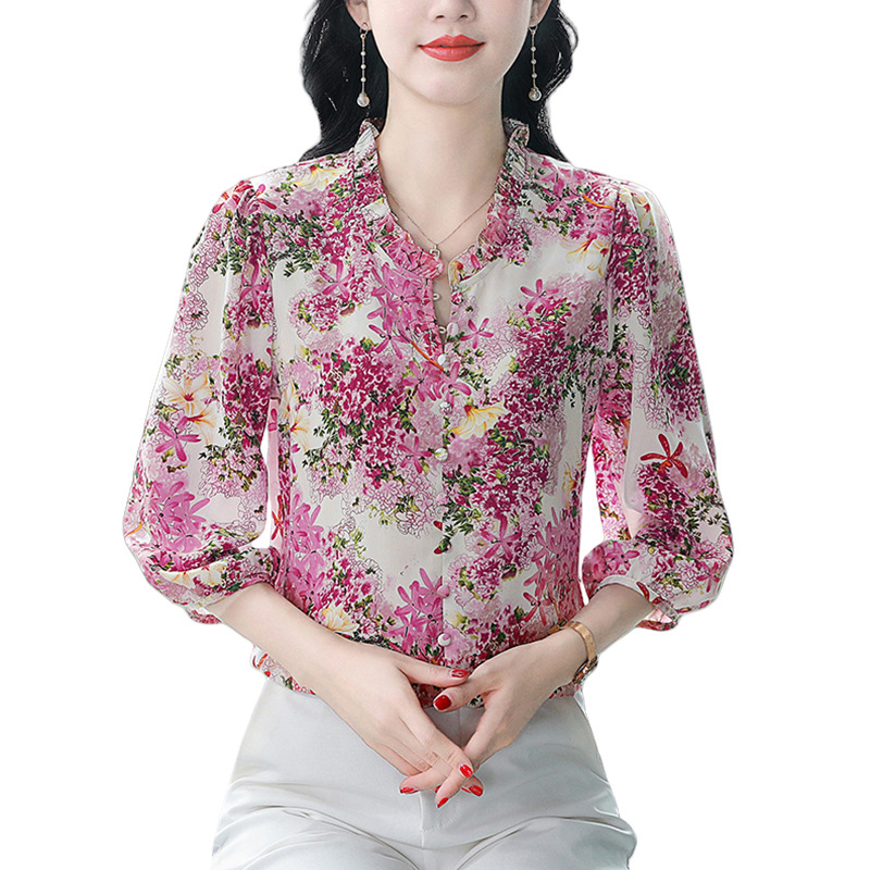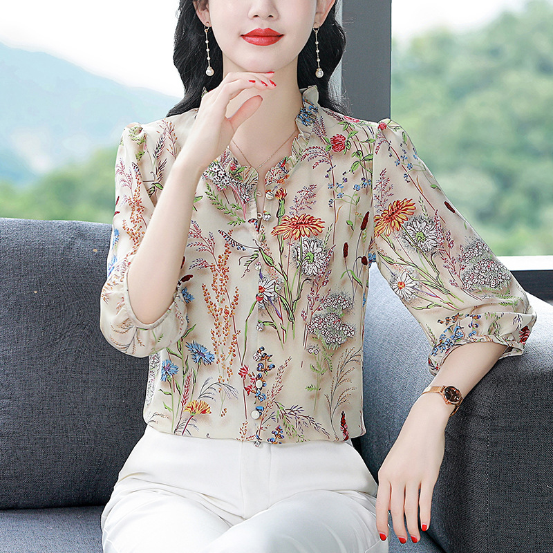 | nameOriginal | Real Shot Chiffon Shirt New Retro Hong Kong Style Elegant Silk Top Women's All-match Loose Belly Covering Shirt |